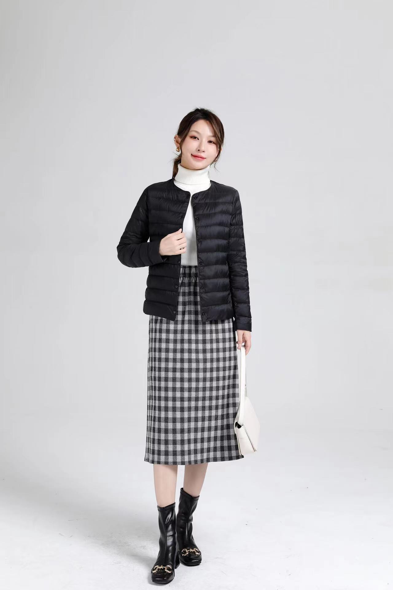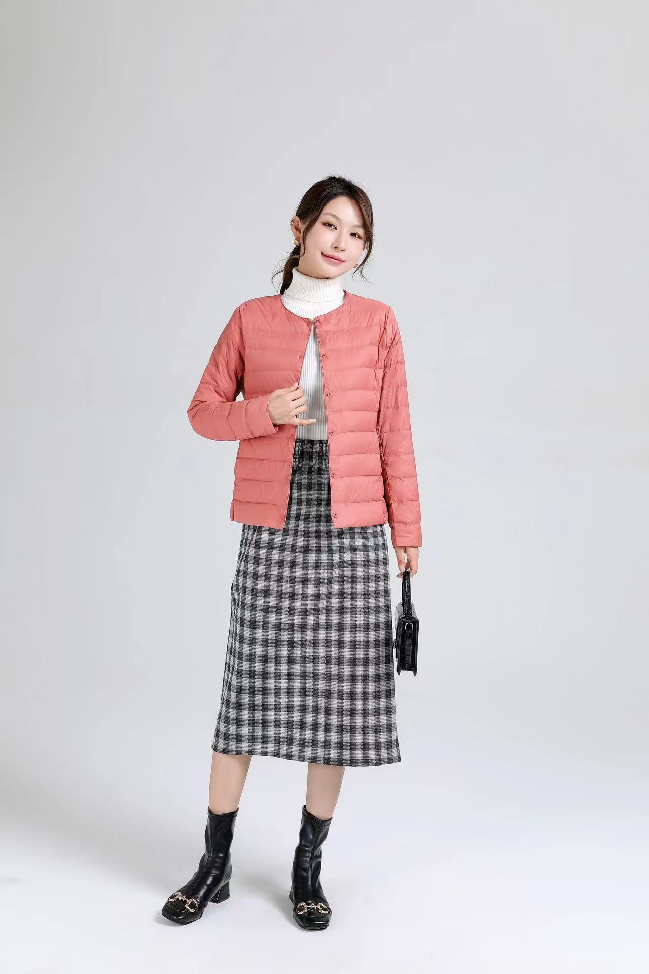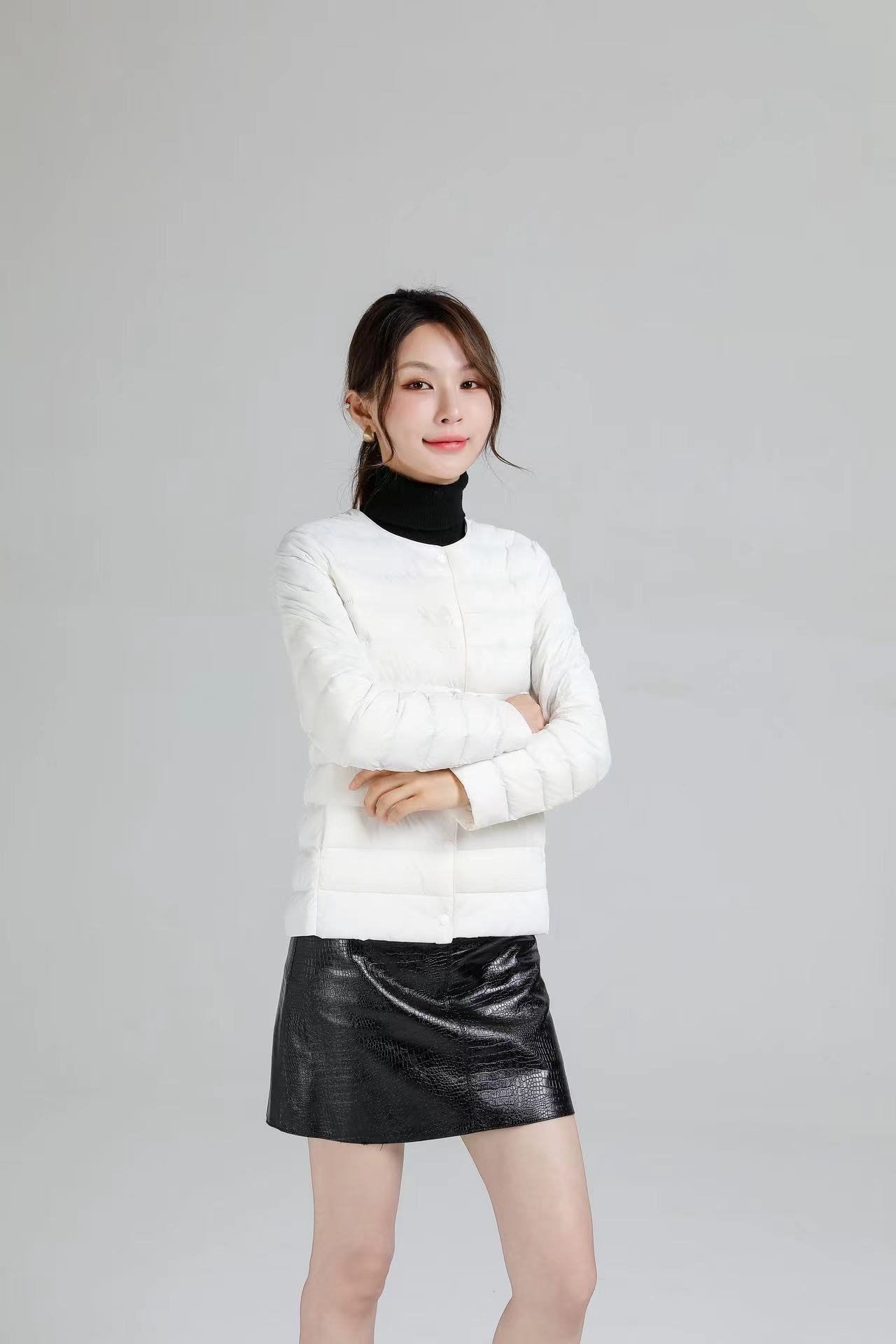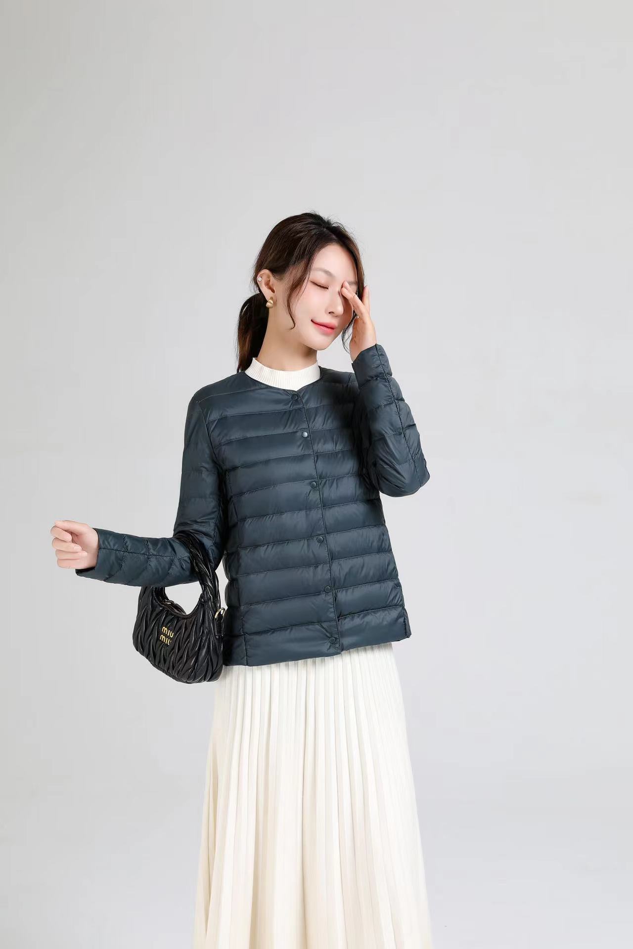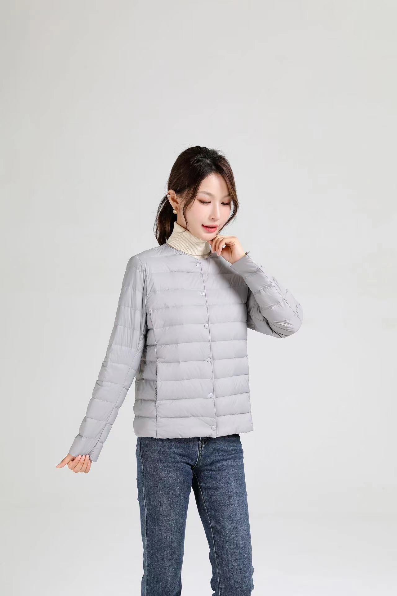2025 새로운 오프 시즌 경량 라운드 넥 다운 재킷 여성 따뜻한 라이너 짧은 대형 코트 가을, 겨울 여성 칼라리스스토어 가기