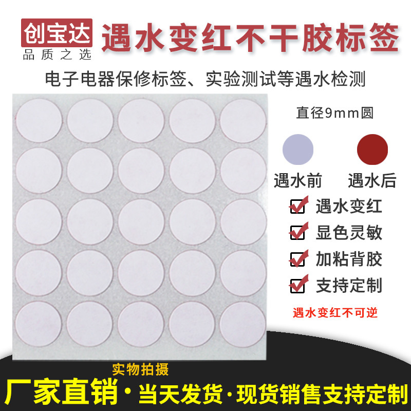 Chuangbaoda는 물 라벨 지름 9mm 원형 500 스티커 전자 및 전기 리튬 배터리 보증 라벨 스티커에 노출되면 빨간색으로 변합니다.스토어 가기