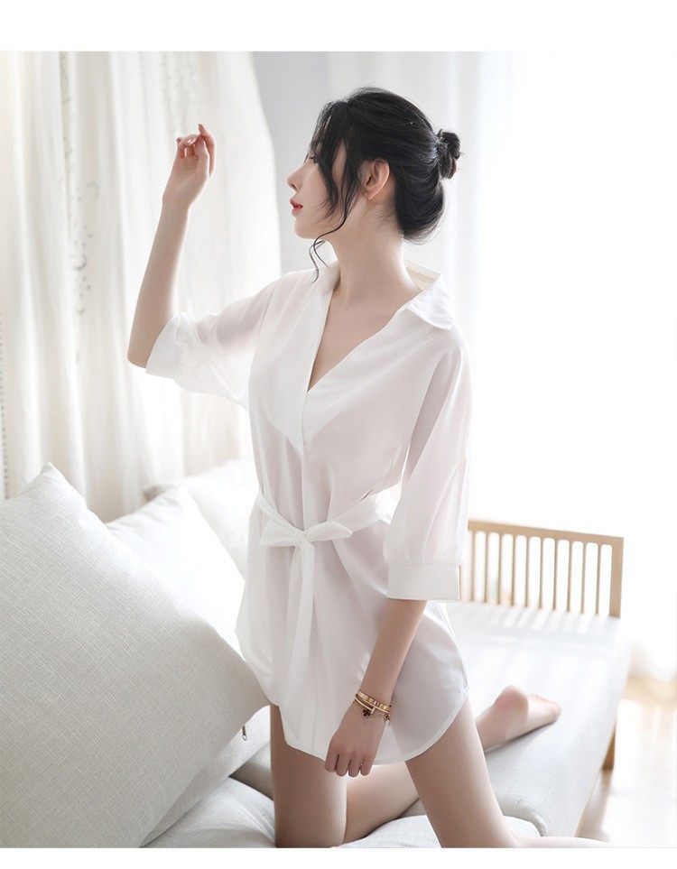 외국 무역 섹시한 속옷 여자의 유혹 귀여운 공주 쉬폰 관점 레이스 업 세트 단색 섹시 셔츠 잠옷