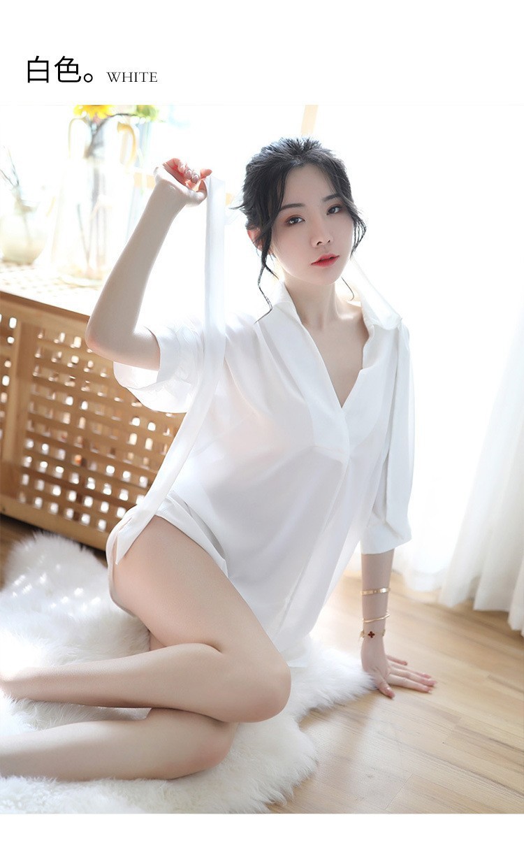 외국 무역 섹시한 속옷 여자의 유혹 귀여운 공주 쉬폰 관점 레이스 업 세트 단색 섹시 셔츠 잠옷스토어 가기