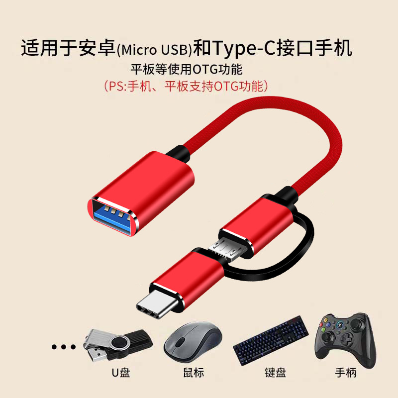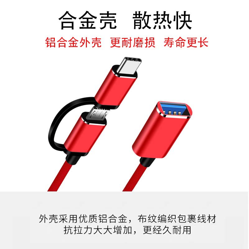 • 안드로이드 TYPE-C 2-in -1 OTG 직조 라인 레드