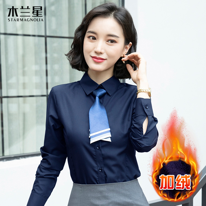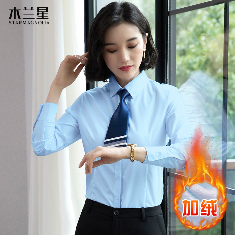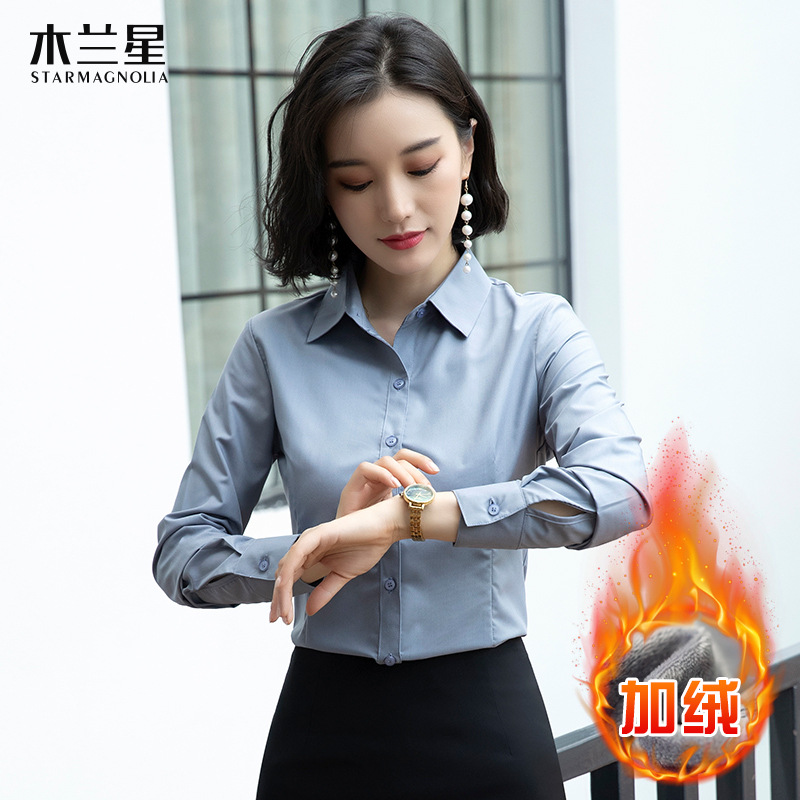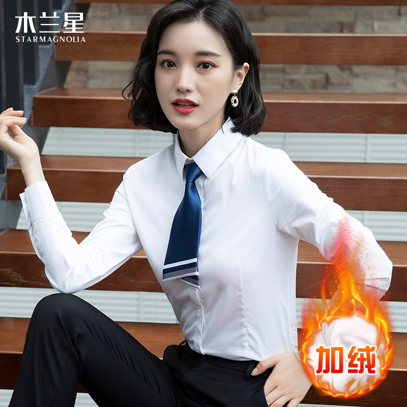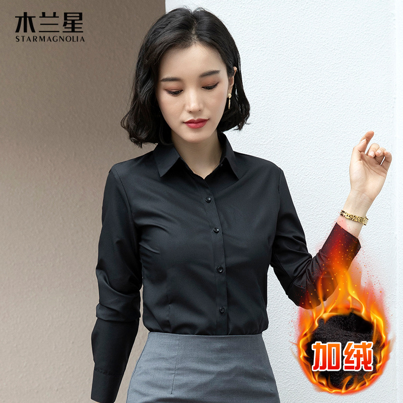 기모 화이트 셔츠 여성의 긴팔 비즈니스 착용 여성의 따뜻한 셔츠 블랙 겨울 새로운 두꺼운 코튼 탑 작업스토어 가기
