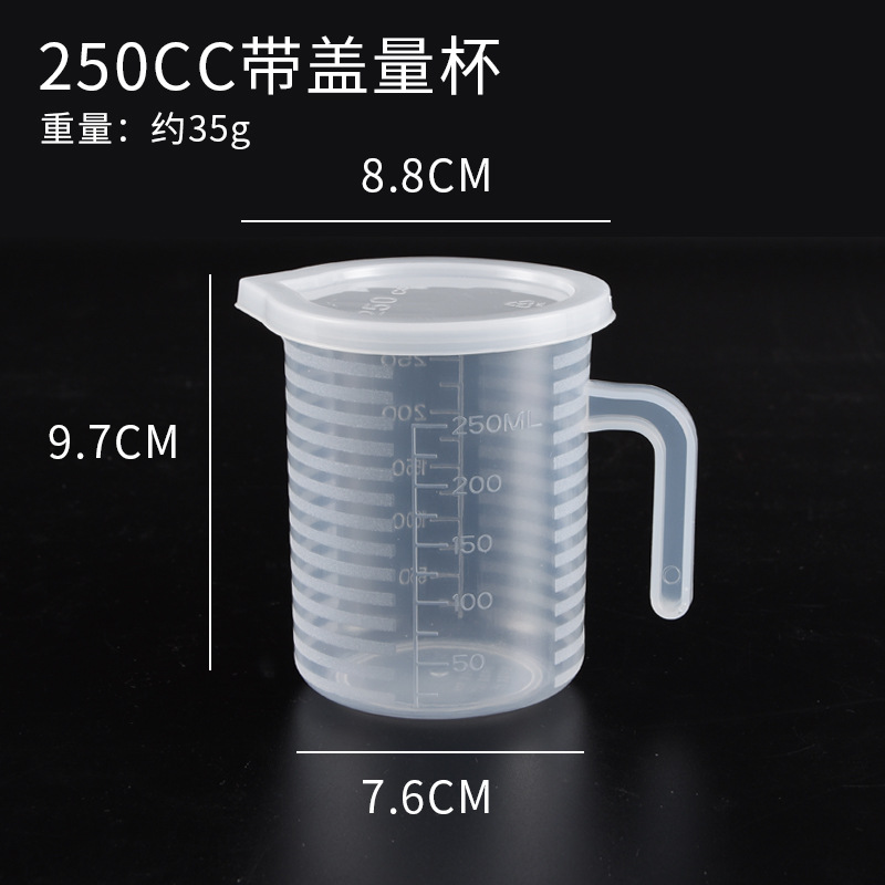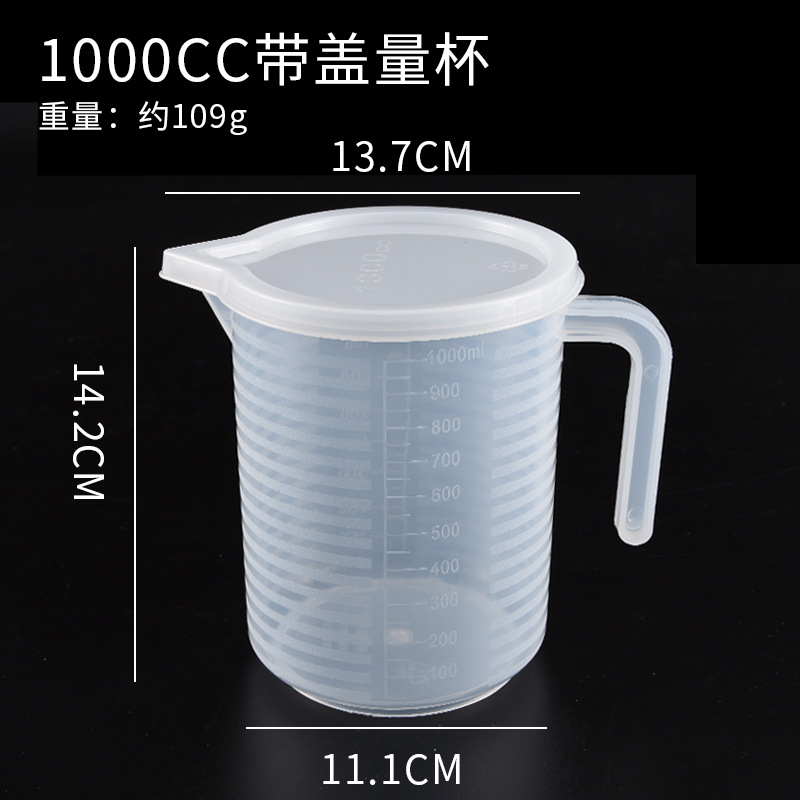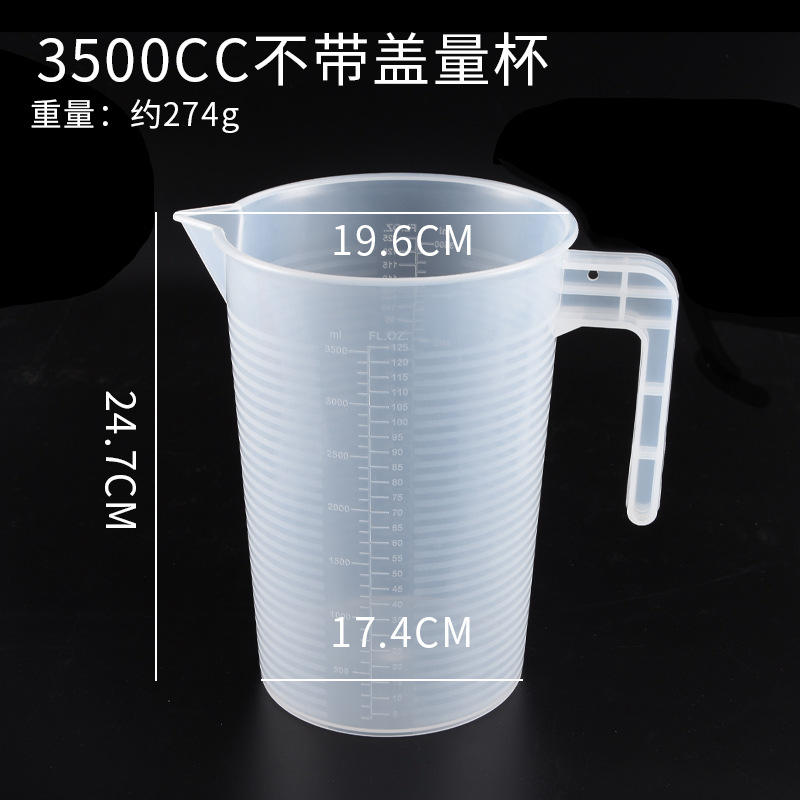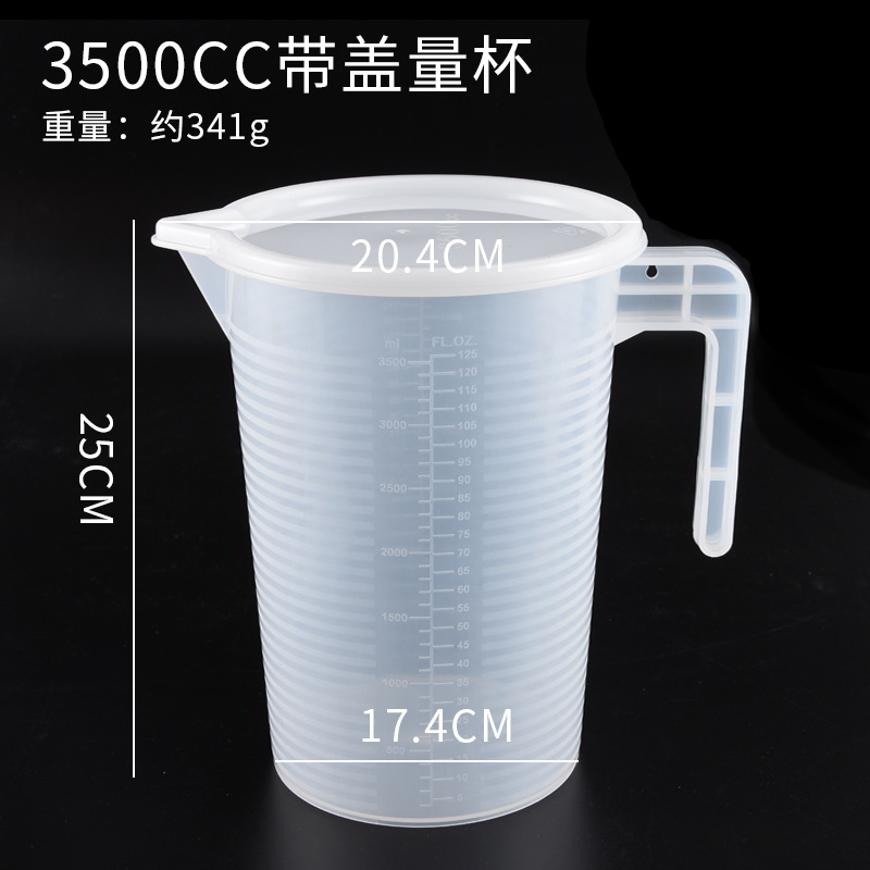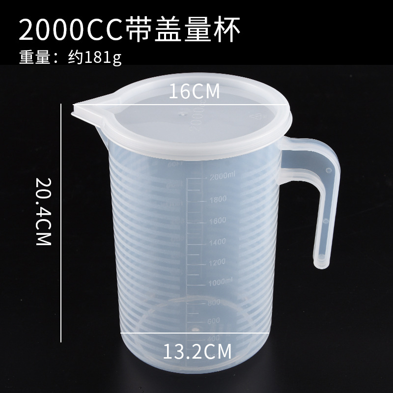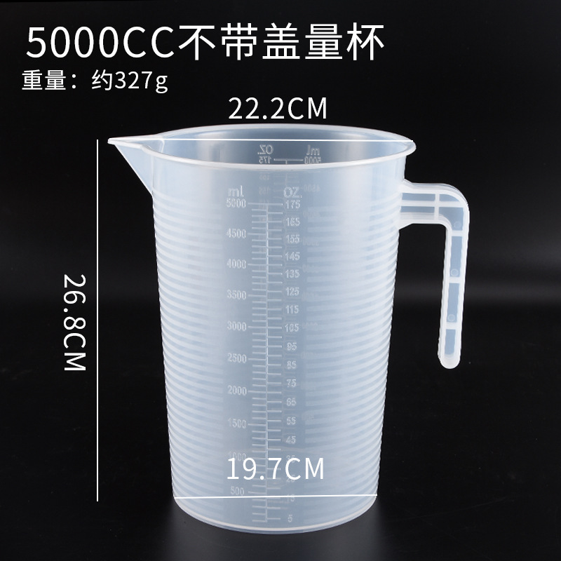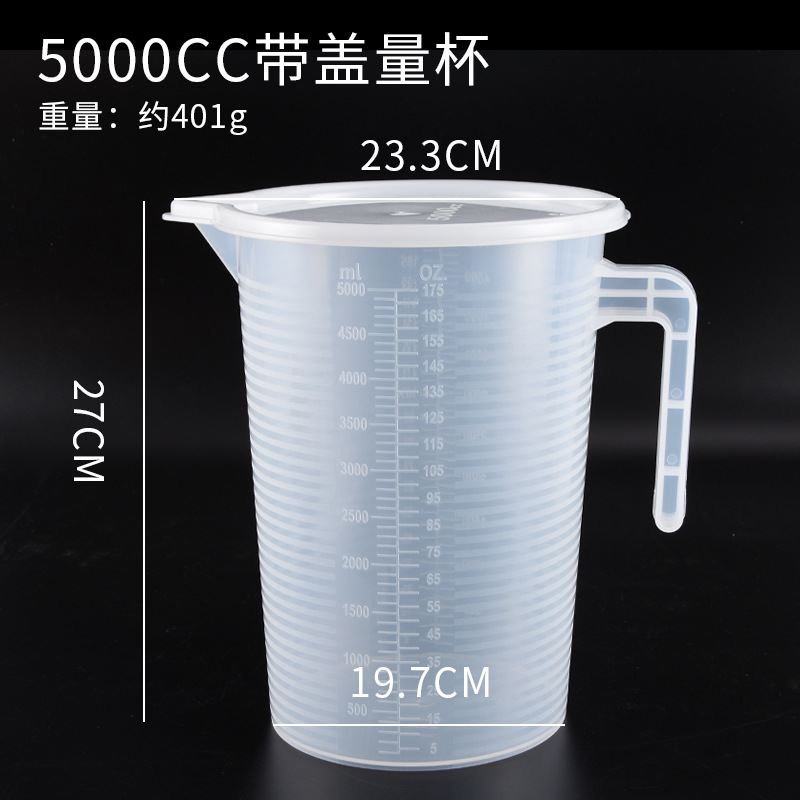 뚜껑과 저울 플라스틱 컵 500/1000/5000ml 우유 차 측정 실린더가 있는 새로운 플라스틱 줄무늬 측정 컵