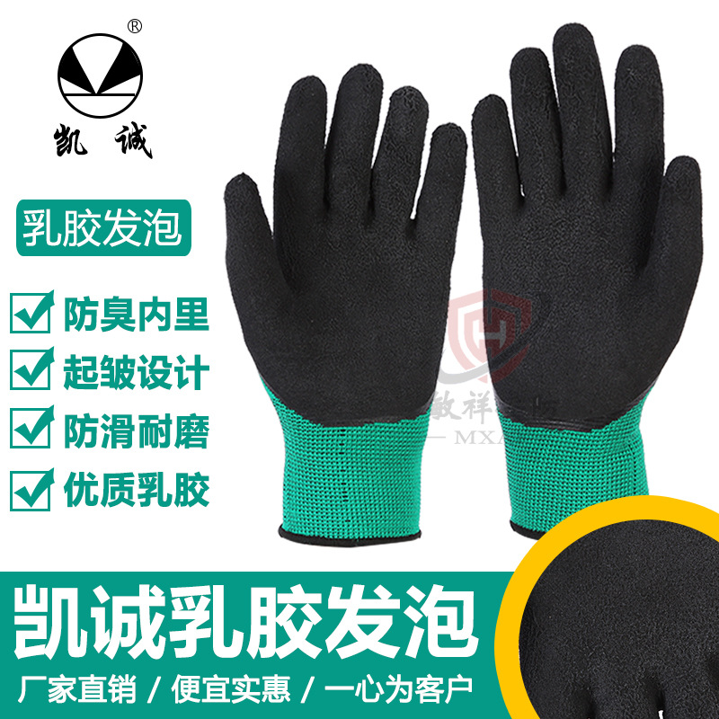 Kaicheng 폼 킹 장갑 라텍스 담근 고무 걸이 고무 주름 미끄럼 방지 내마모성 두꺼운 작업 공장 노동 보호 장갑스토어 가기