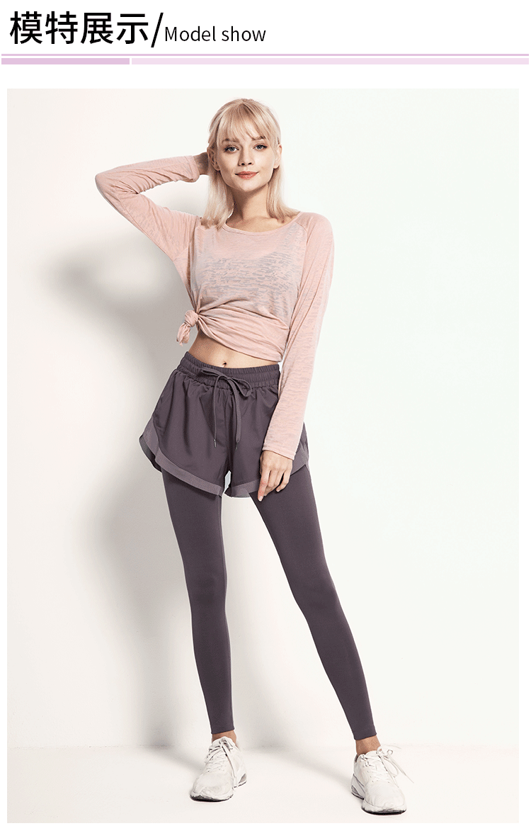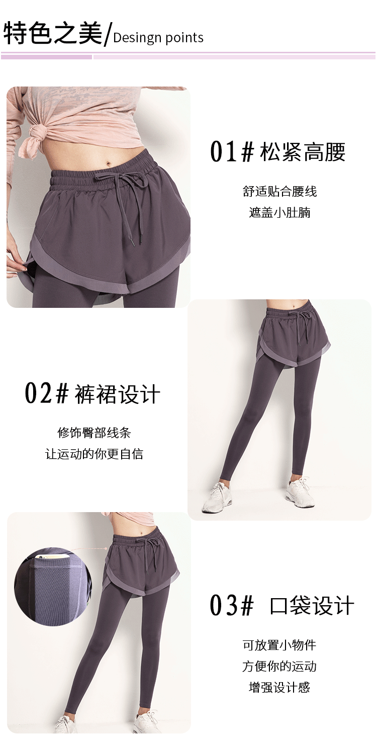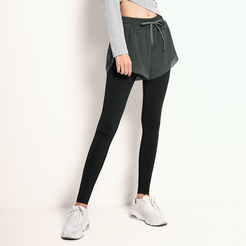 닝보 Anjiu 피트니스 바지 여성용 가짜 투피스 러닝 타이트 요가 바지 하이 웨이스트 스포츠 엉덩이 리프팅 탄성 스포츠 바지 여성