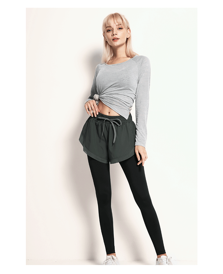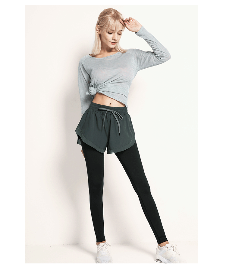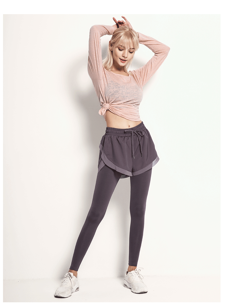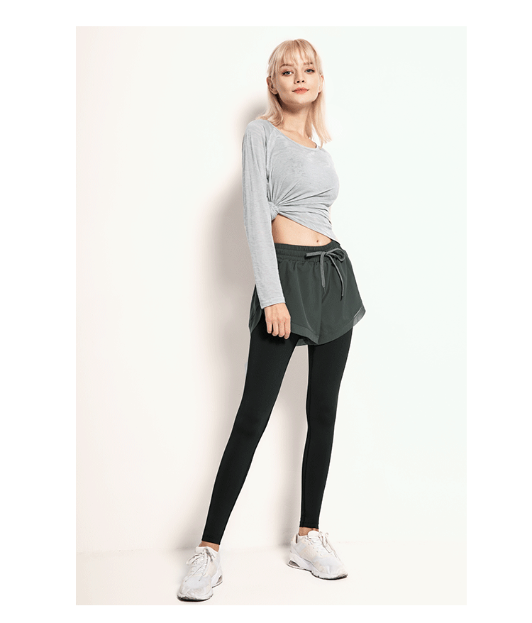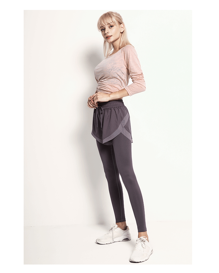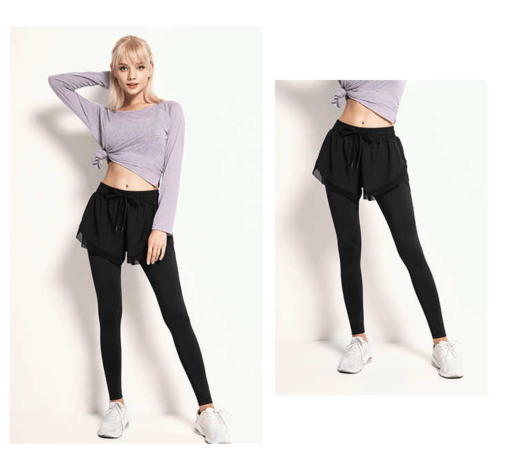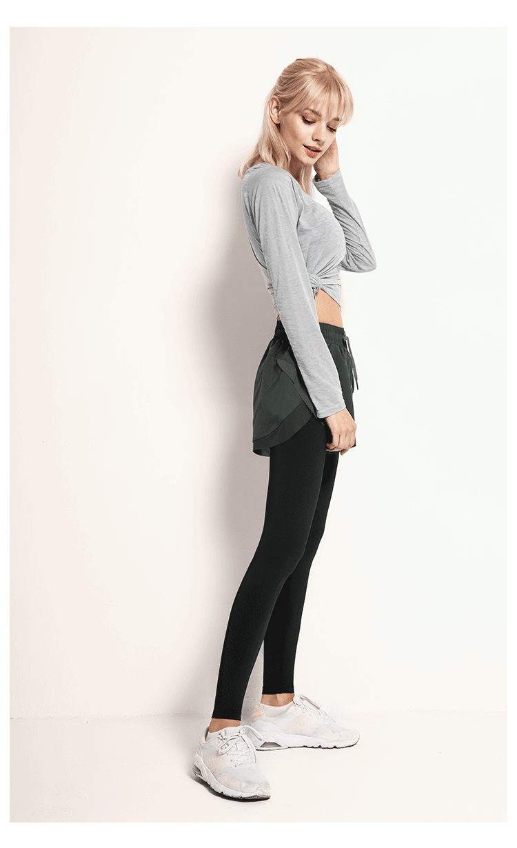 닝보 Anjiu 피트니스 바지 여성용 가짜 투피스 러닝 타이트 요가 바지 하이 웨이스트 스포츠 엉덩이 리프팅 탄성 스포츠 바지 여성스토어 가기