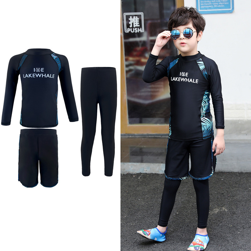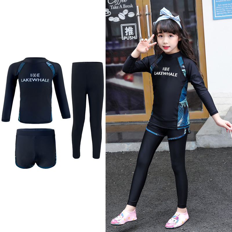 부모-자식 수영복 소녀 어린이 다이빙 세트 소년의 긴 소매 분할 태양 방지 속건 해변 온천 수영복스토어 가기