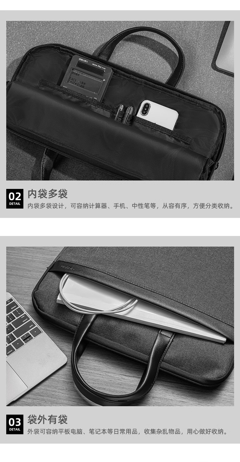 델리 서류 가방 63751 컴퓨터 가방 휴대용 파일 가방 데이터 저장 가방 사무실 비즈니스 회의 핸드백스토어 가기