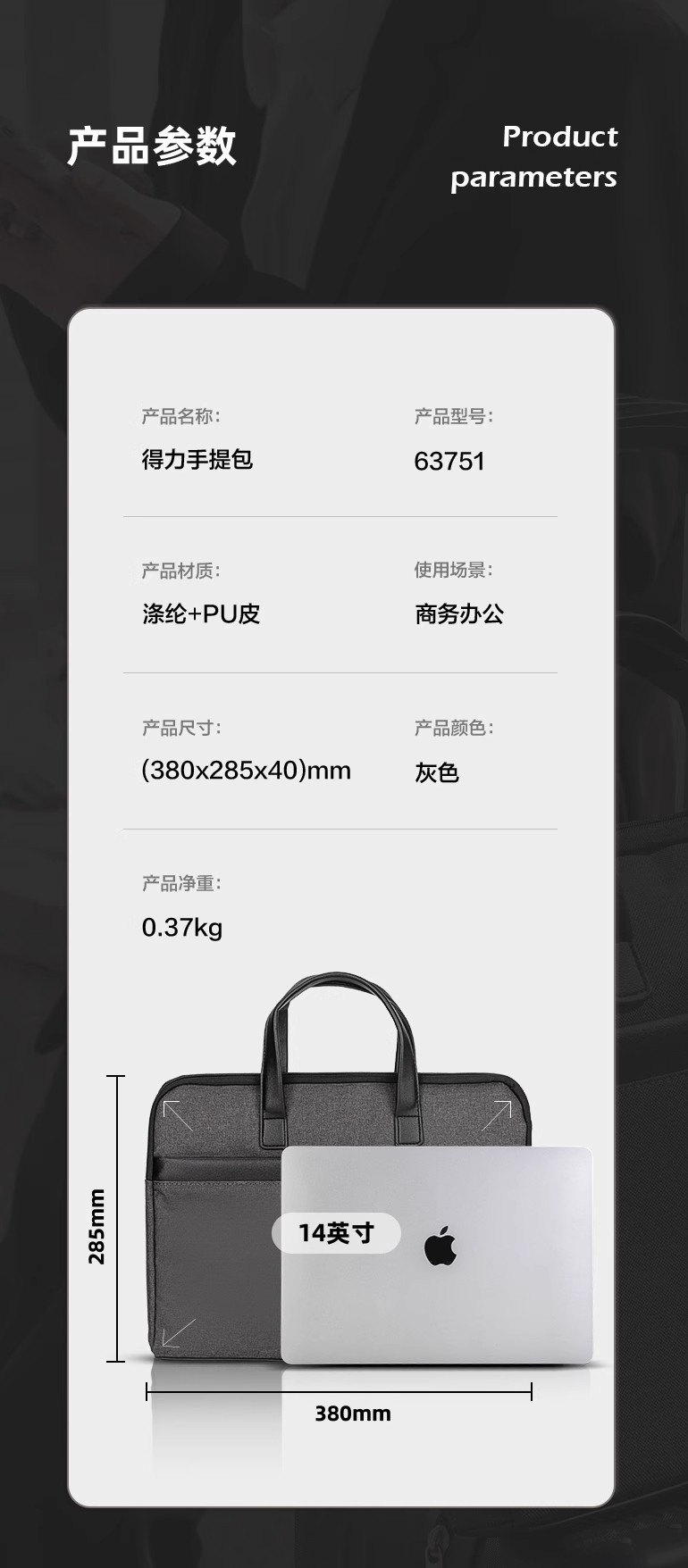 델리 서류 가방 63751 컴퓨터 가방 휴대용 파일 가방 데이터 저장 가방 사무실 비즈니스 회의 핸드백