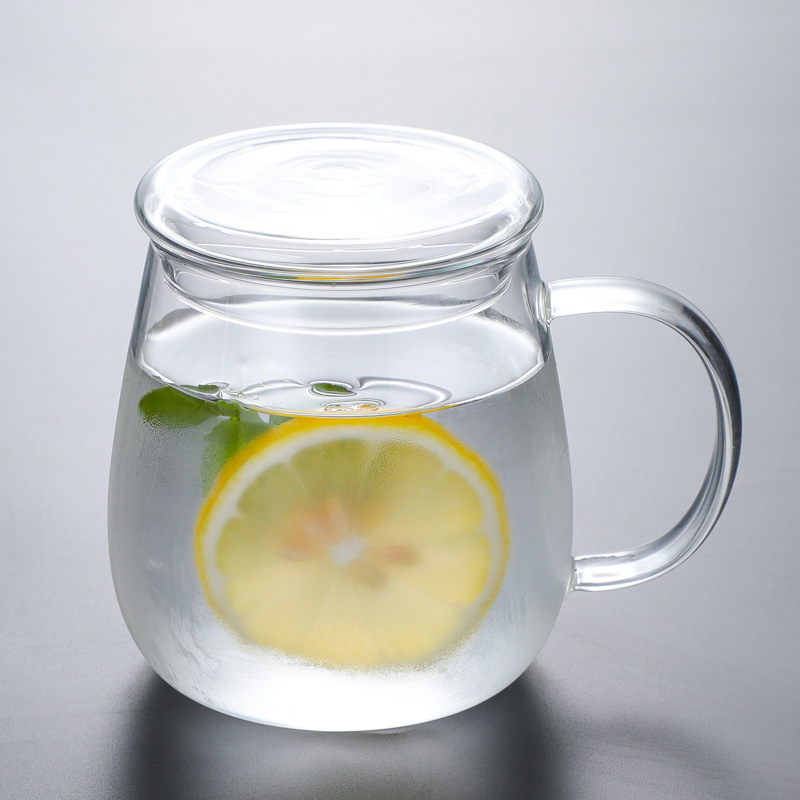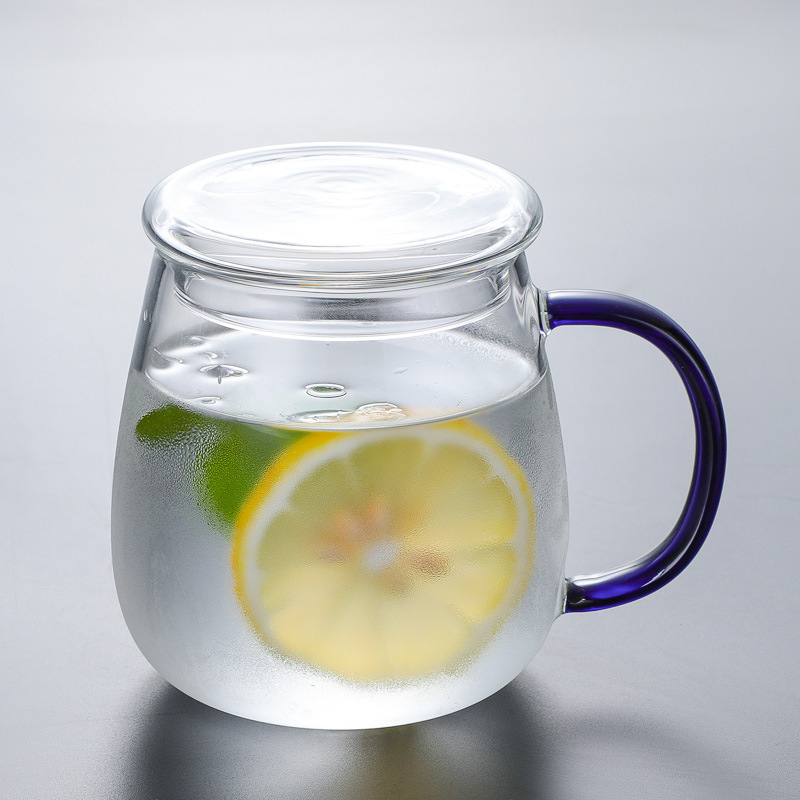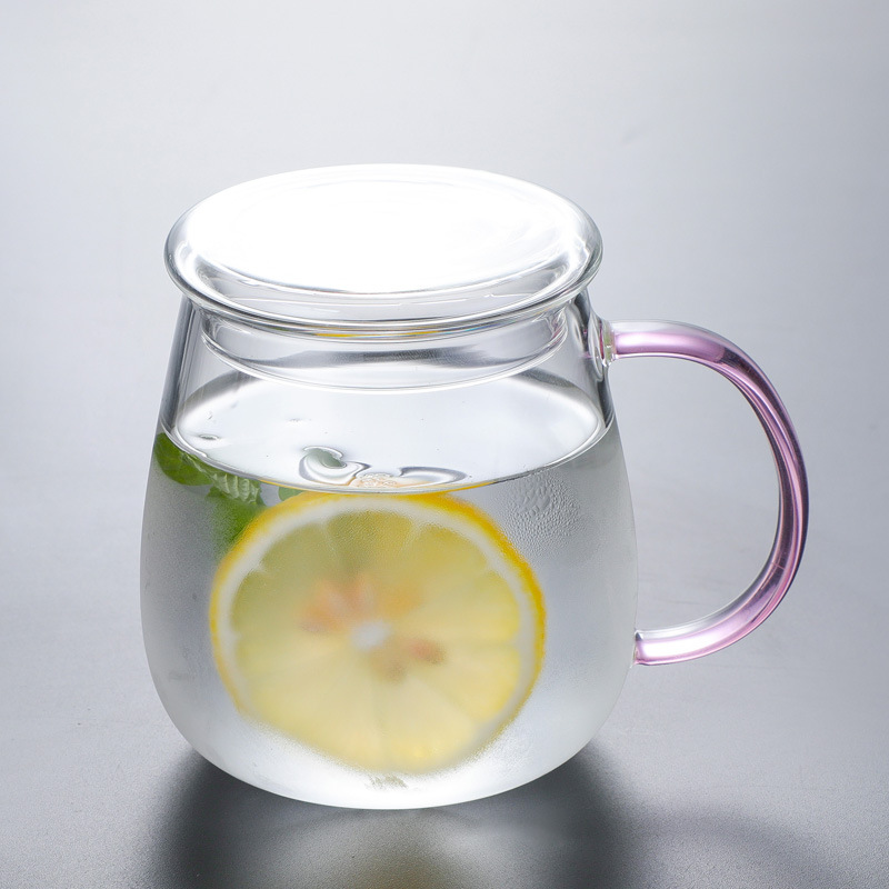 뚜껑 마시는 컵 포함 공장 도매 가정용 유리 물컵 손잡이 버블 컵 컬러 손잡이 우유 컵스토어 가기