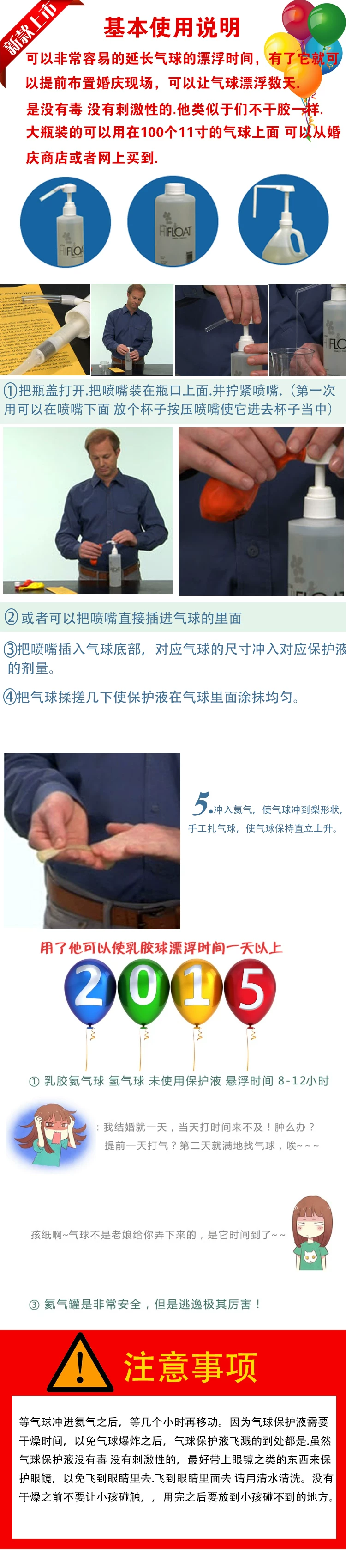 此产品需要非常专业的操作,且由于温度 湿度 气压等外界条件因素影响,会达不到预期效果,请注意!在下雨天气下要吹干气球!