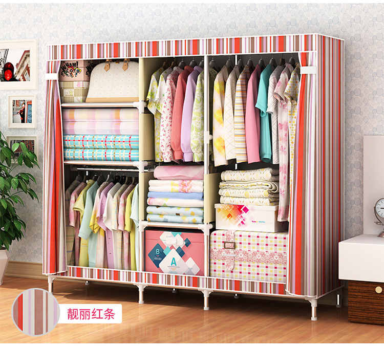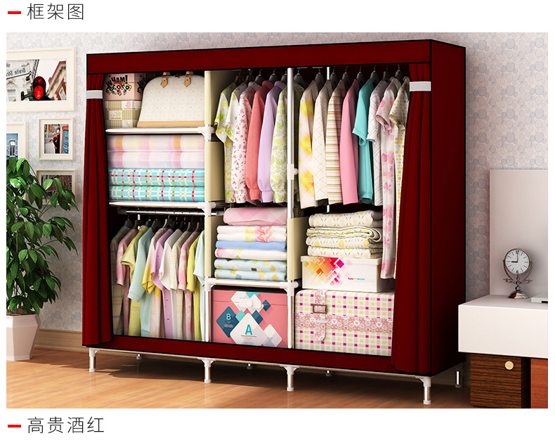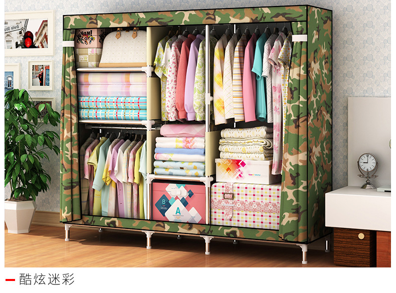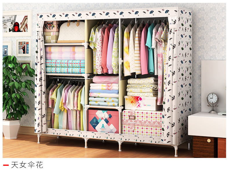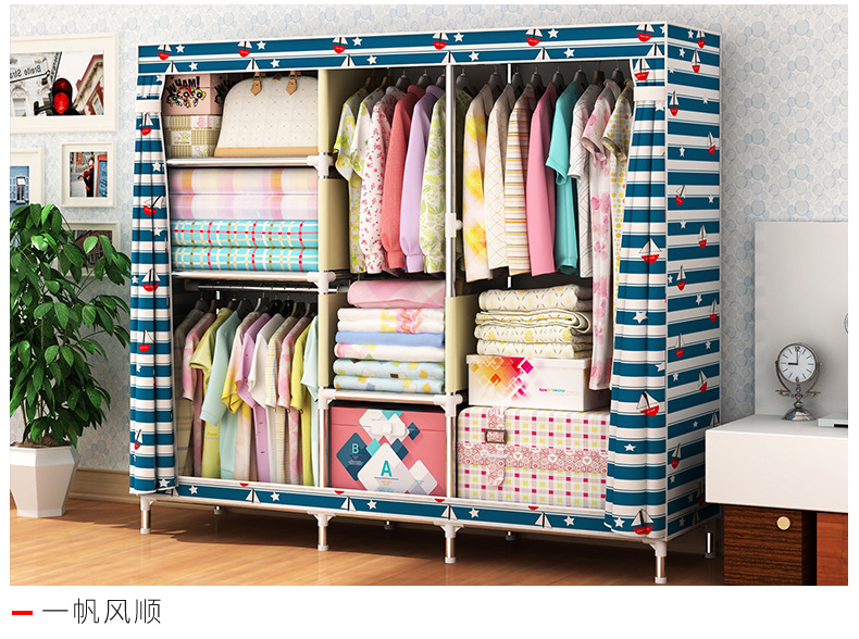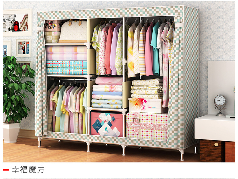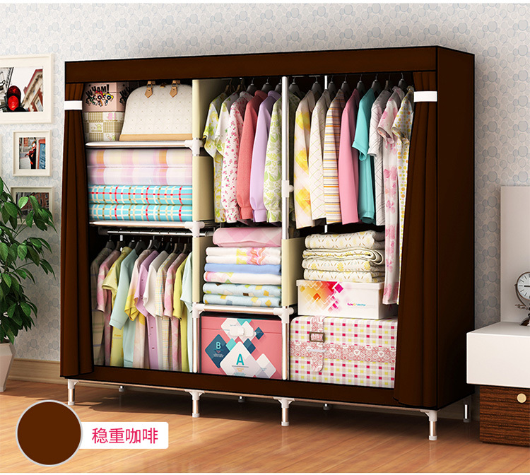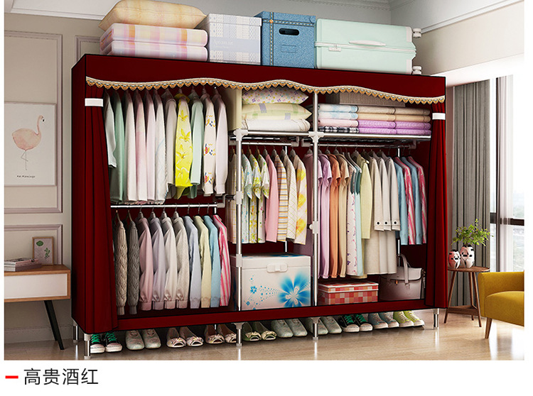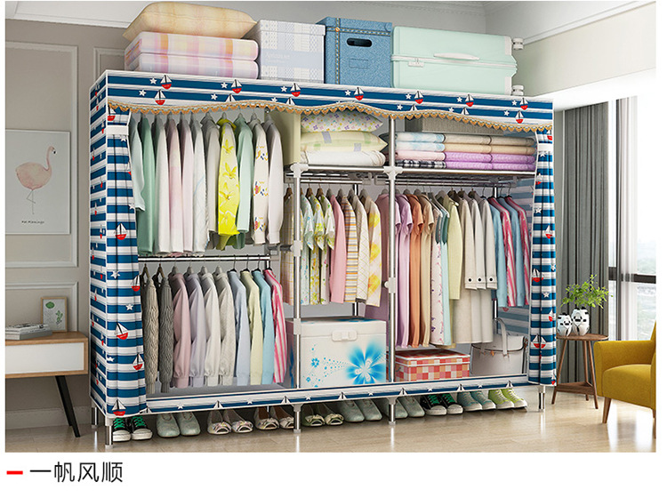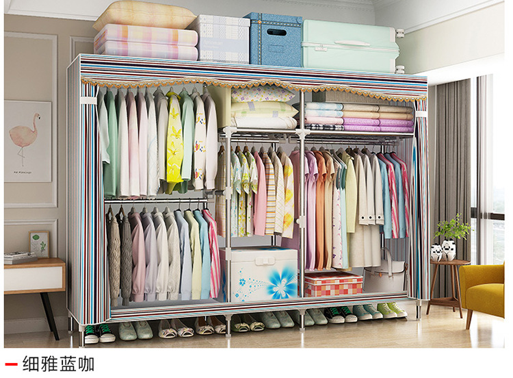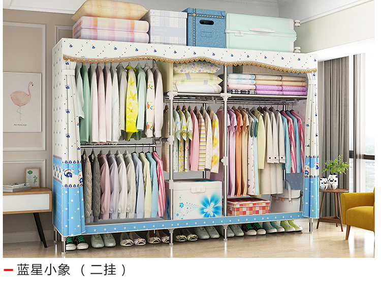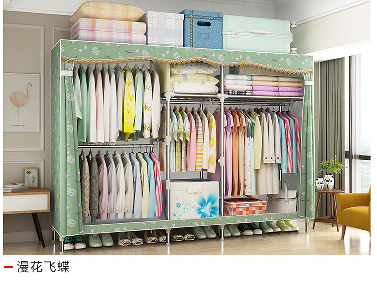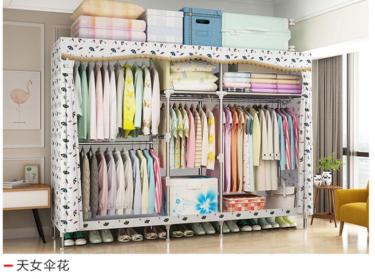 2511 더블 기숙사 조립 교수형 옷장 간단한 패브릭 보관 스틸 프레임 금속 천 옷장 강철 파이프 굵은 강화스토어 가기