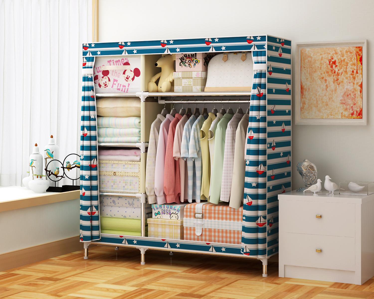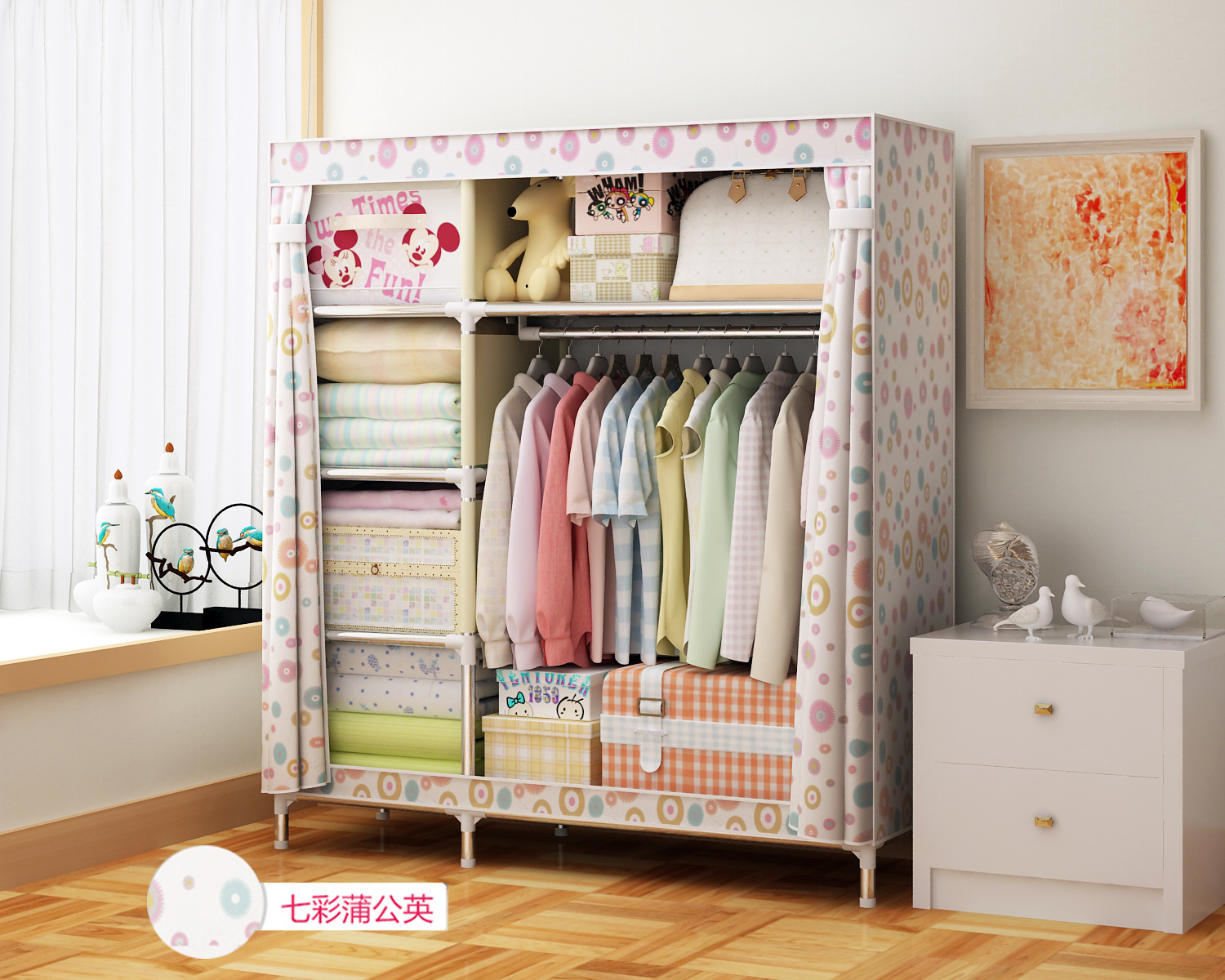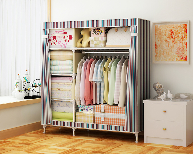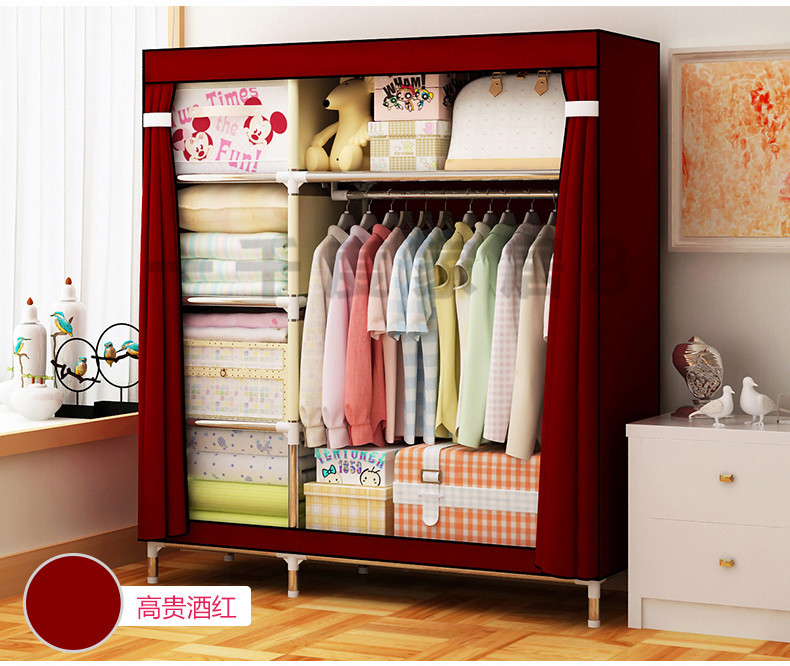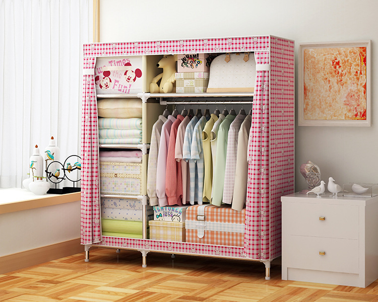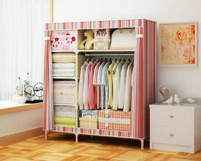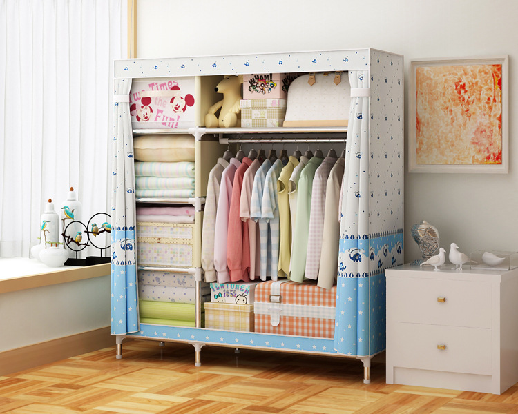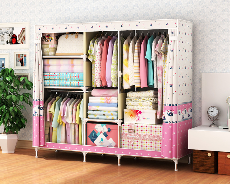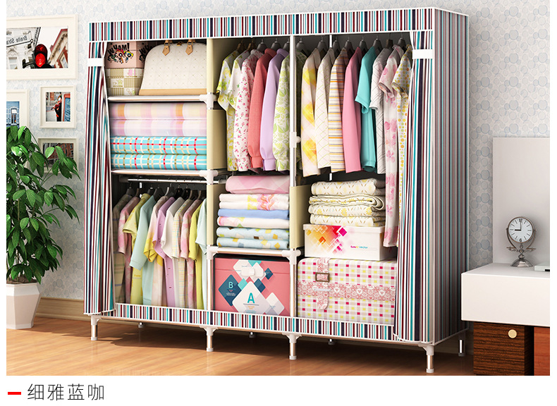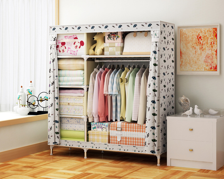 2511 더블 기숙사 조립 교수형 옷장 간단한 패브릭 보관 스틸 프레임 금속 천 옷장 강철 파이프 굵은 강화스토어 가기
