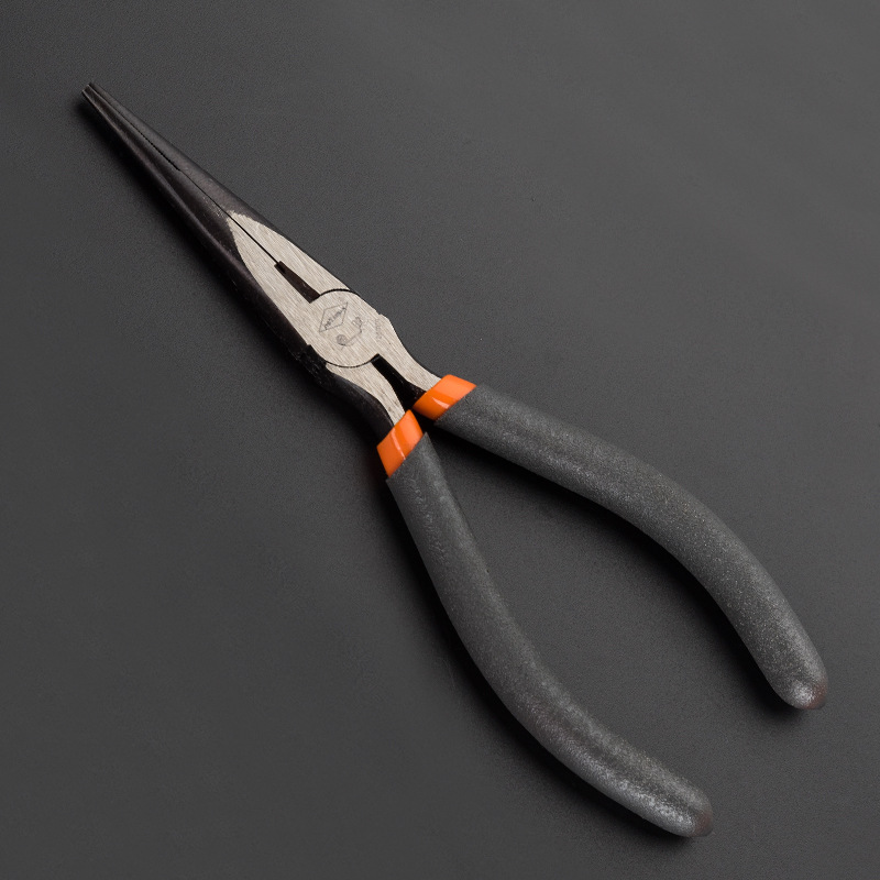 Jinyang 소스 공장은 회로 기판 수리를 위한 일본식 주황색 회색 접착성 플라스틱 손잡이 바늘코 펜치를 직접 공급합니다.