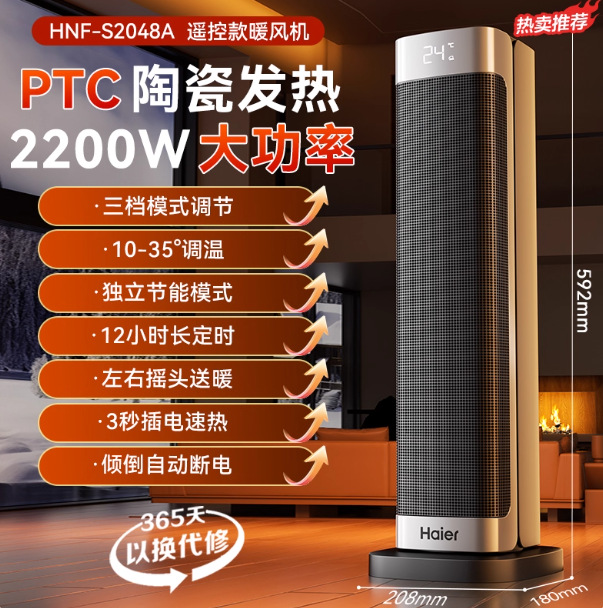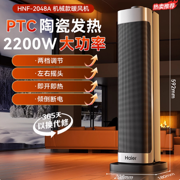 하이얼 히터 가정용 히터 사무실 기숙사 뜨거운 공기 송풍기 욕실 전기 히터 HN2009/HNS2012스토어 가기