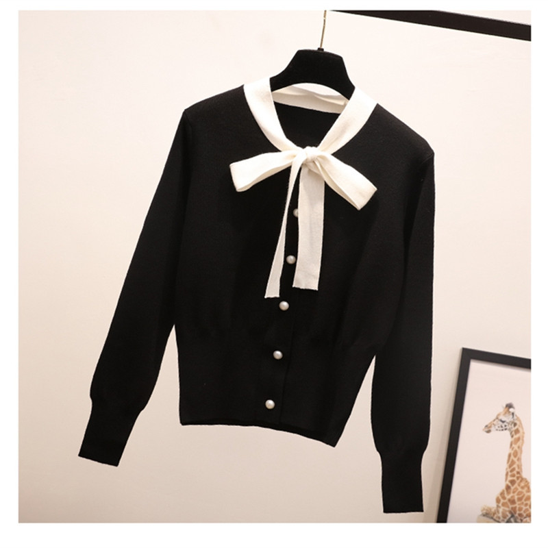 2022 봄 여성복 리본 가디건 니트웨어 여성 긴팔 하이웨이스트 숏 스타일 여성 니트 자켓 숏 스타일 슬림핏스토어 가기