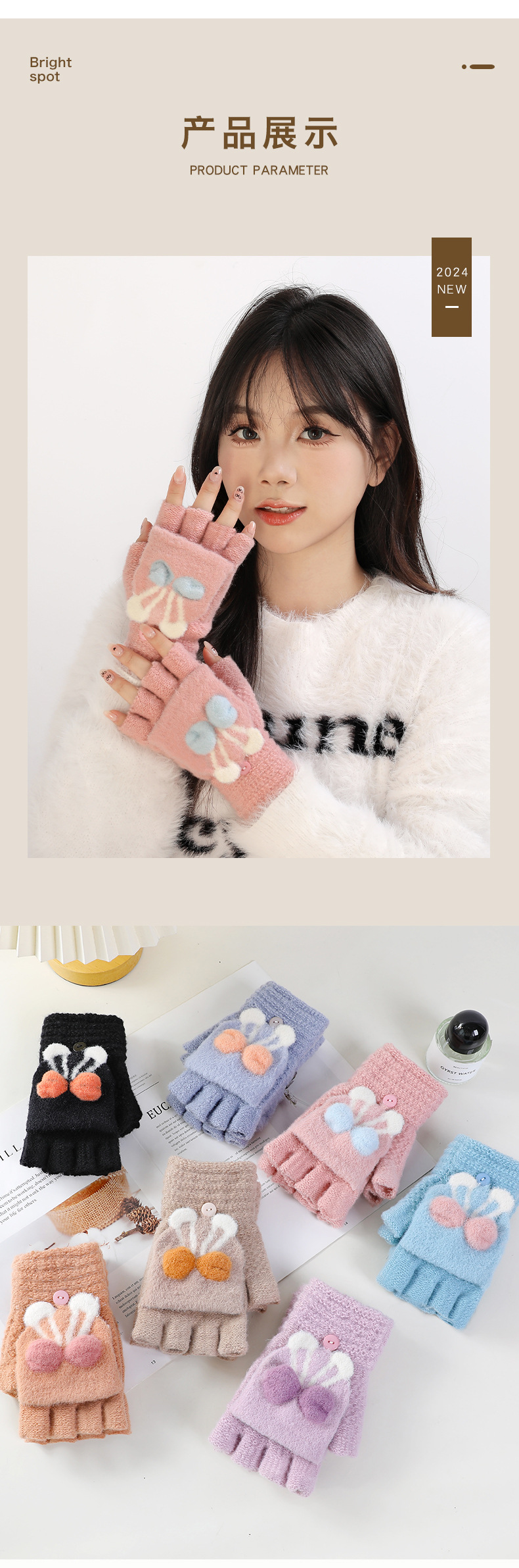 여성용 겨울 학생용 반장갑 귀여운 한국 스타일 만화 따뜻한 선택 가능한 색상 플러스 벨벳 장갑 제조업체 RY