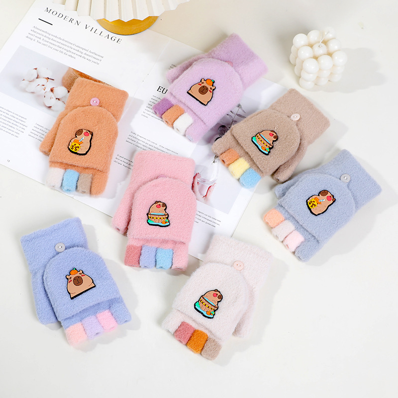 여성용 겨울 학생용 반장갑 귀여운 한국 스타일 만화 따뜻한 선택 가능한 색상 플러스 벨벳 장갑 제조업체 RY스토어 가기