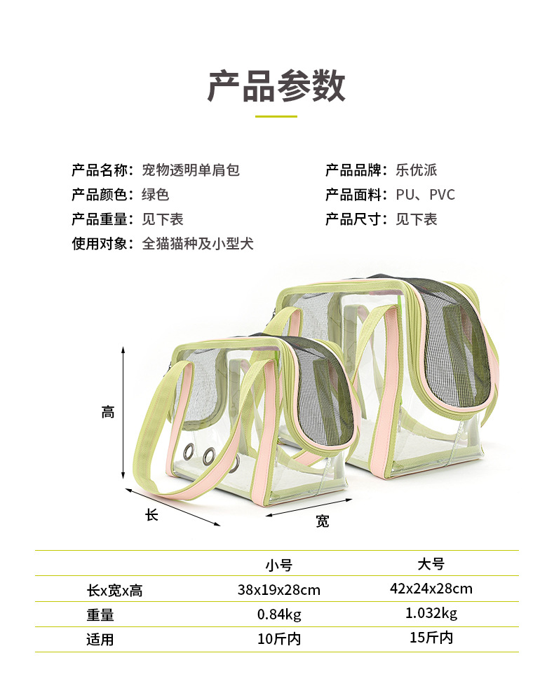 Leyoupai 투명 고양이 가방 나가는 휴대용 애완 동물 가방 싱글 숄더 고양이 가방 넓은 공간 머리카락을위한 휴대용 애완 동물 가방