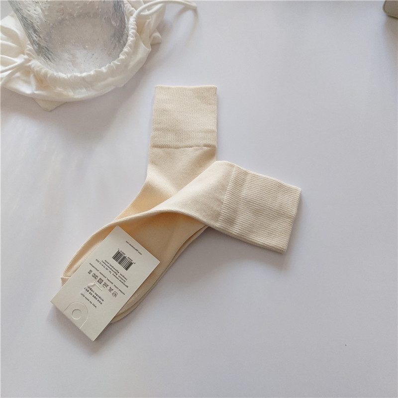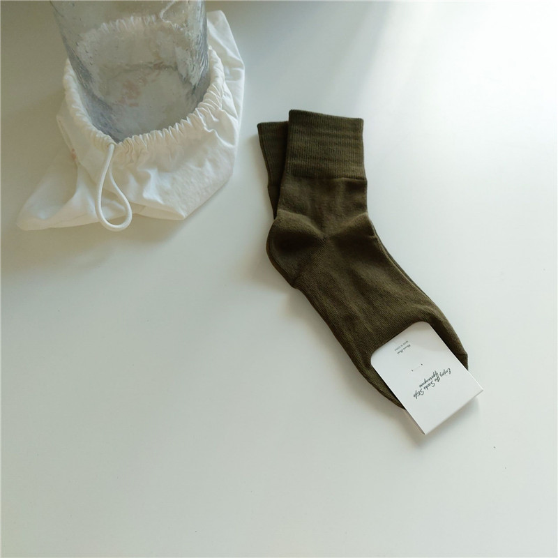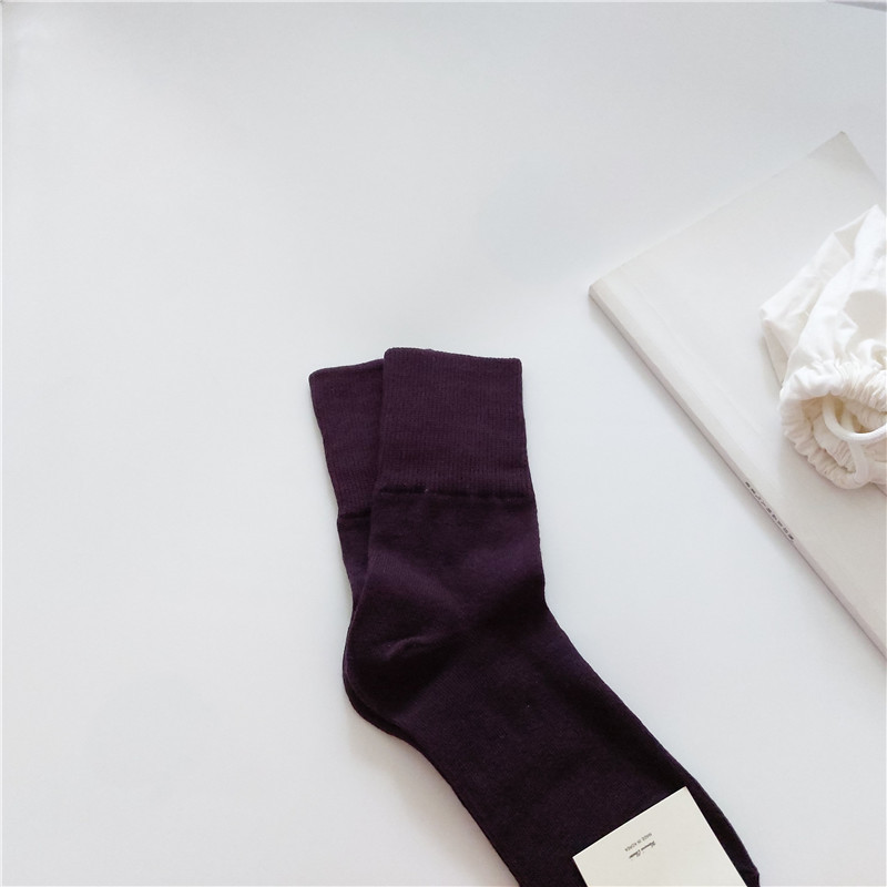 한국 수입 gorgorangnae 봄, 가을과 겨울 여성 단색 기본 면 양말 W-L-199스토어 가기