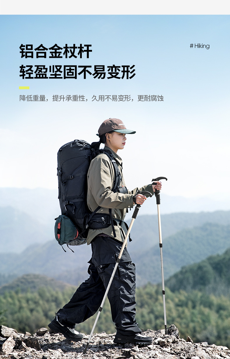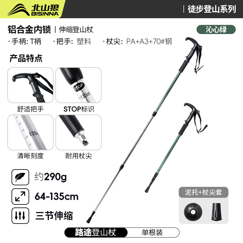 Beishan 늑대 야외 울트라 라이트 접이식 등산 스틱 알루미늄 합금 개폐식 스트레이트 핸들 T 핸들 목발 하이킹 스틱 등산 스틱