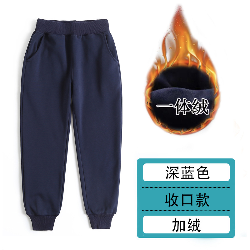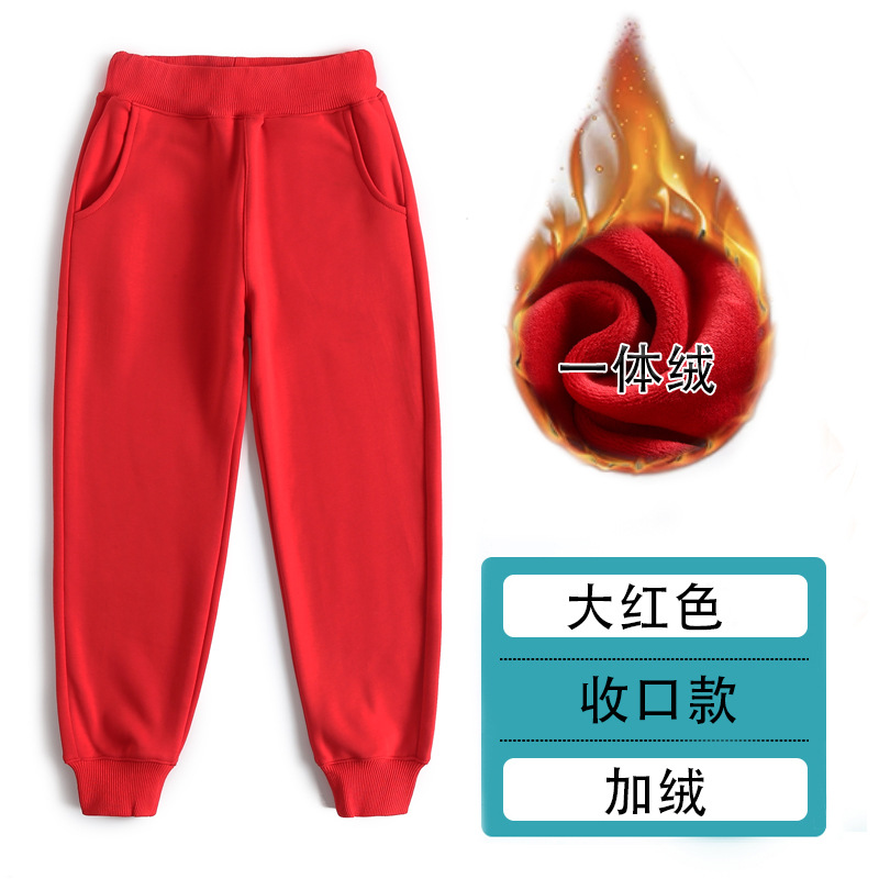 소년과 소녀의 세대 어린이 단색 교복 바지 기모 면 겨울 바지 레드 다크 블루 네이비 그레이 블랙
