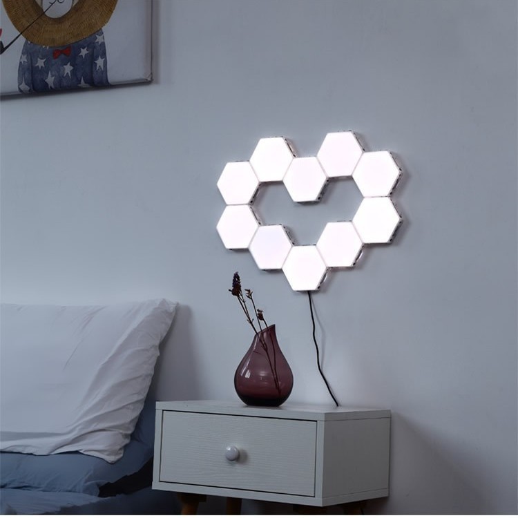 맞춤형 터치 센서 야간 조명 LED 벽 램프 분위기 램프 자기 접합 양자 램프 RGB 색상 변경 벌집 램프