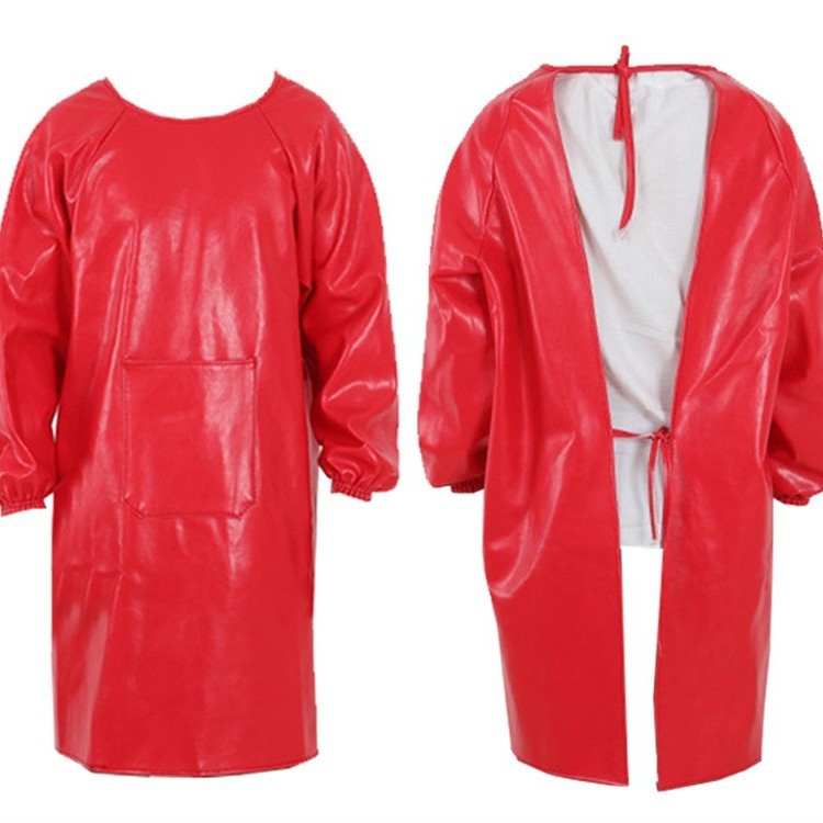 Pu 거꾸로 재킷 소매 가죽 반전 앞치마 방수 오버 코트 기름 방지 긴 소매 방수 앞치마 플러스 사이즈 기름 방지 피부 거꾸로