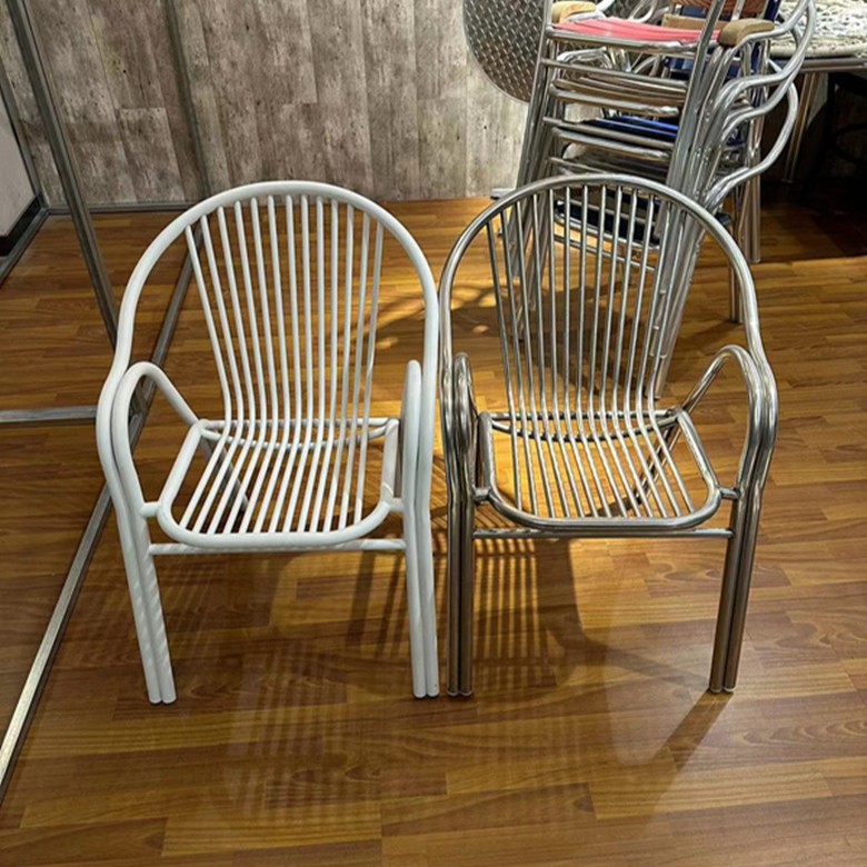 알루미늄 합금 의자 흰색 야외 베이킹 페인트 원형 테이블 커피 우유 차 안뜰 테이블 디자이너 협상 금속 식탁 조합