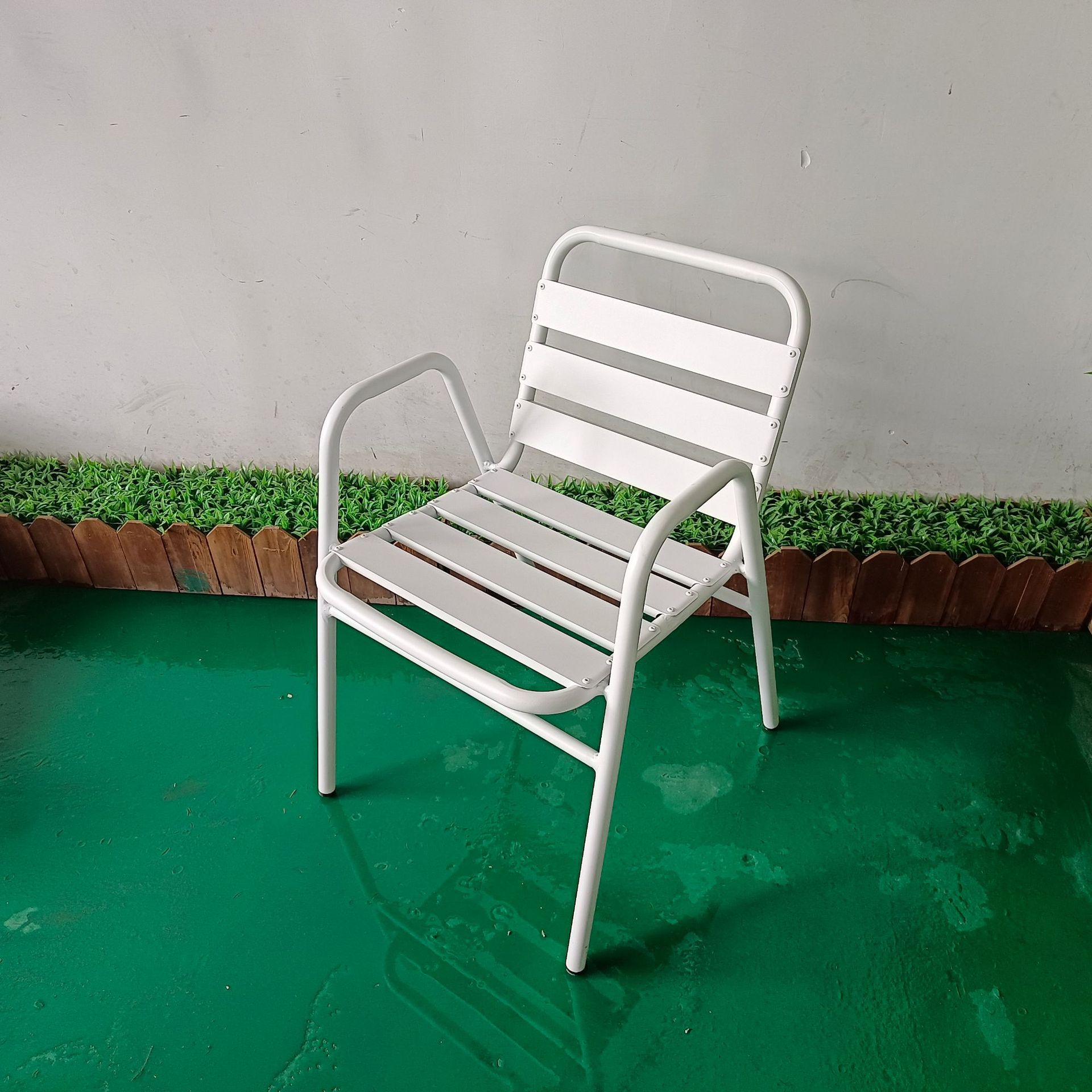 알루미늄 합금 의자 흰색 야외 베이킹 페인트 원형 테이블 커피 우유 차 안뜰 테이블 디자이너 협상 금속 식탁 조합스토어 가기
