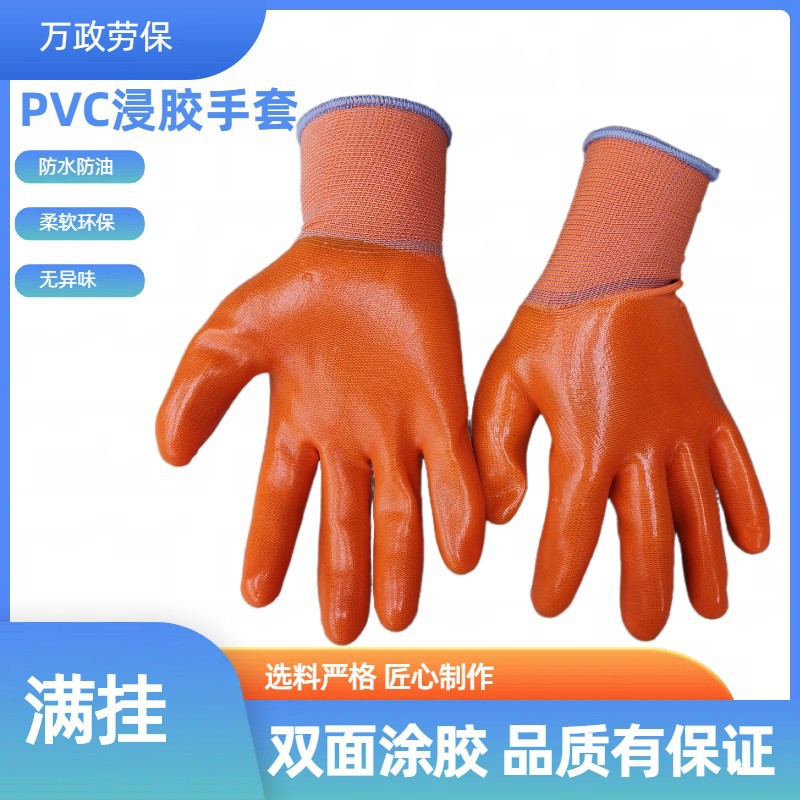 PVC 접착제 담근 장갑 오렌지 원사 Daquan 교수형 노동 보호 장갑 접착제 두꺼운 노동 보호 장갑스토어 가기