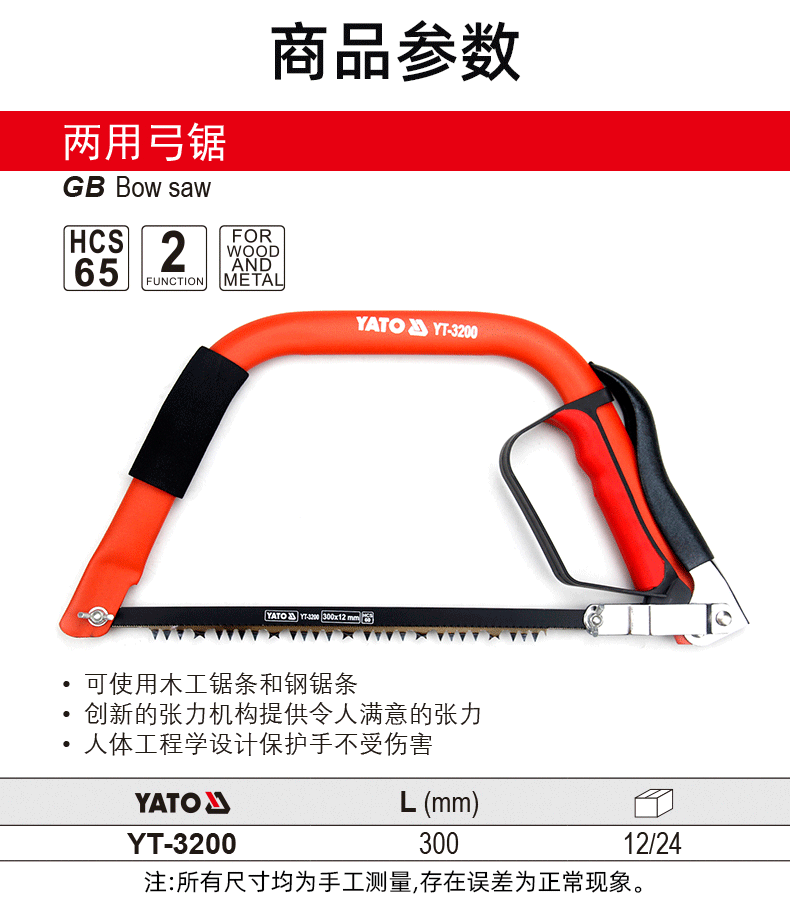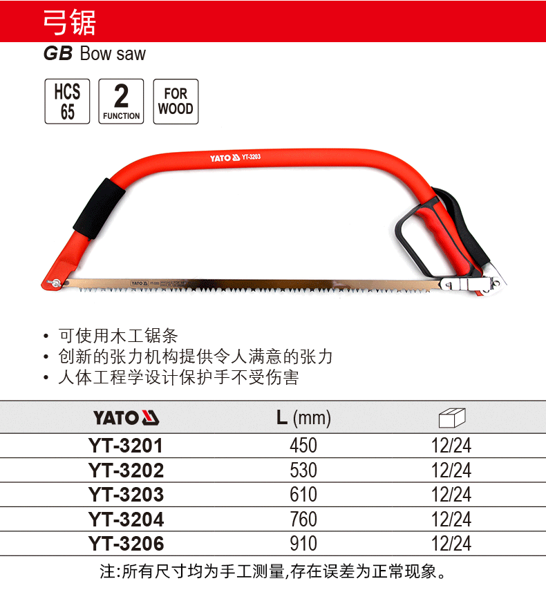 YATO 높은 활 톱 강한 쇠톱 프레임 곡선 활 정원 깊은 허리 원예 나무 가지 치기 톱 수동 목공 톱스토어 가기