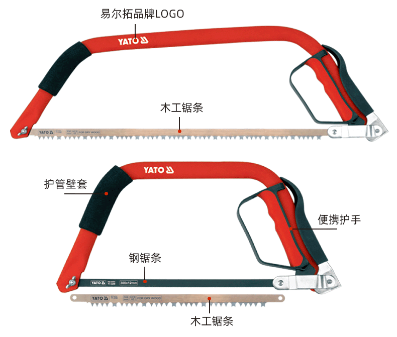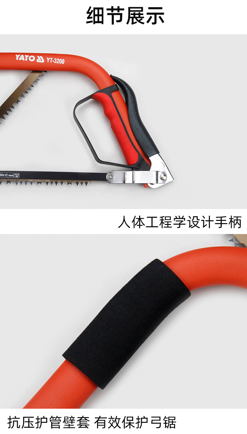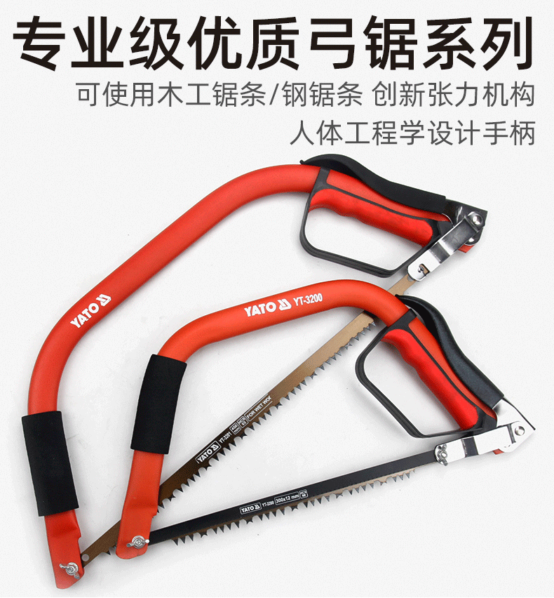 YATO 높은 활 톱 강한 쇠톱 프레임 곡선 활 정원 깊은 허리 원예 나무 가지 치기 톱 수동 목공 톱