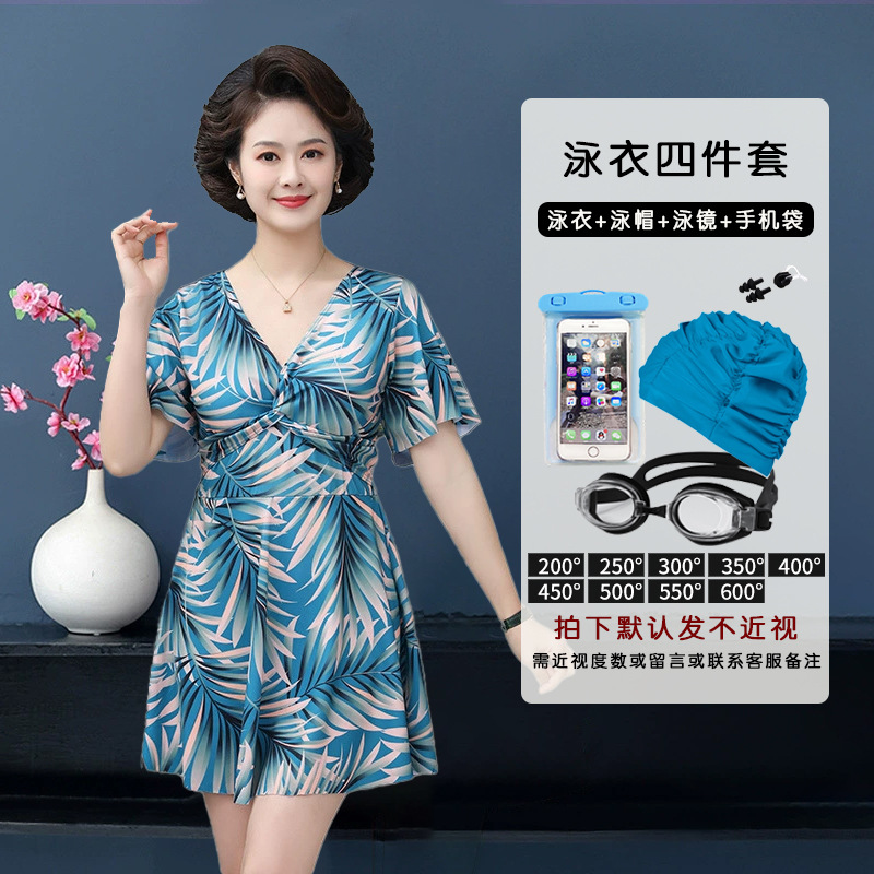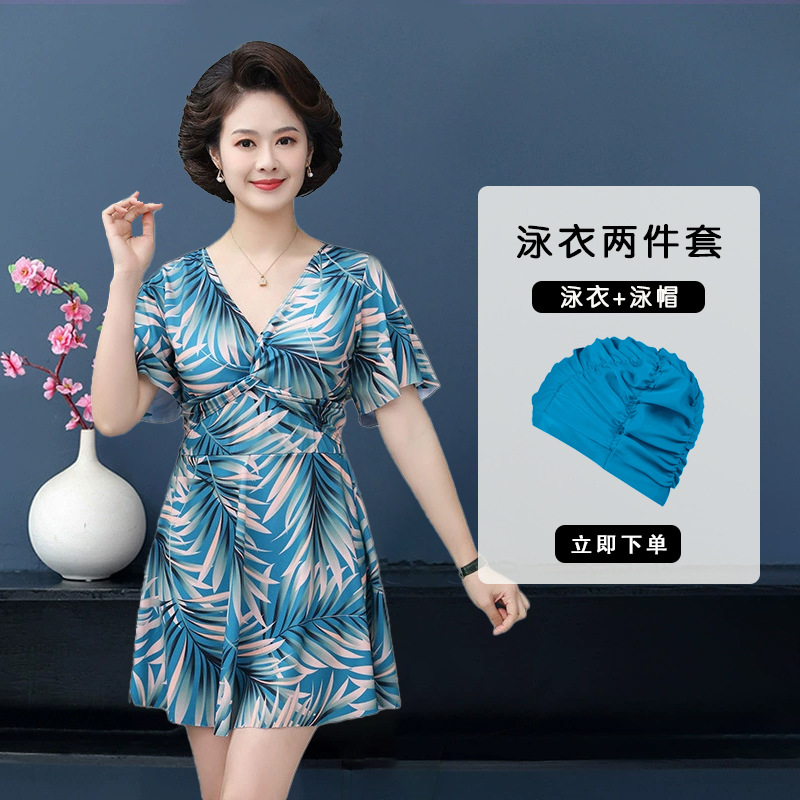 원피스 수영복 여성용 새로운 플러스 사이즈 보수적 인 슬림 한 살 커버 유행 인쇄 한국 스타일 어머니의 해변 온천 수영복스토어 가기