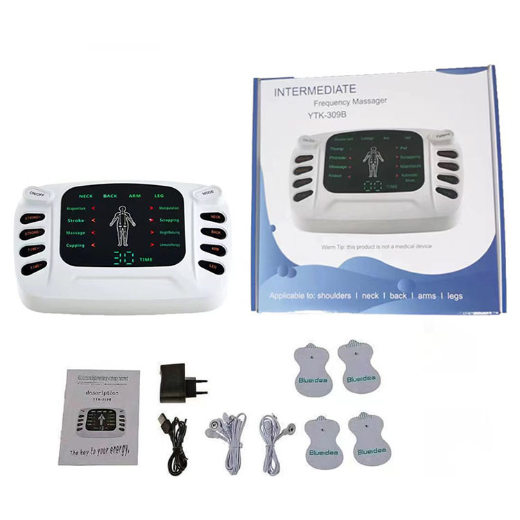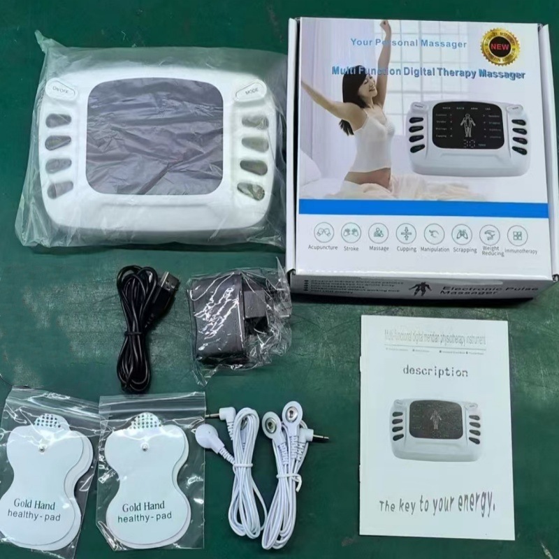 这款多功能彩屏中频按摩仪是利用电流脉冲信号模拟按摩锤击等按摩手法通过贴片传递给人体不同的部位,适应于颈肩,腰腿,疏通身体,彩色屏幕适合晚上操作,机器顶部有2个输出孔,可以同时接2条输出导线,最多可以双人使用或同时最多按摩身体8个部位,操作简单,锤击,推拿,按摩,揉捏,拍打,刮痧,指压,自动8个模式,15级力度有中英文版欢迎来电咨询,量大价优!
