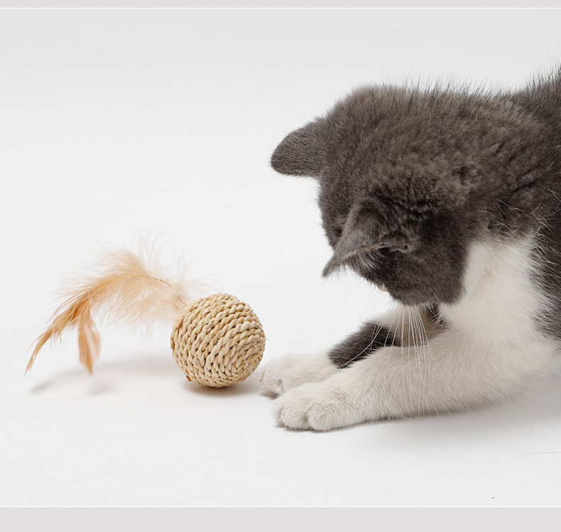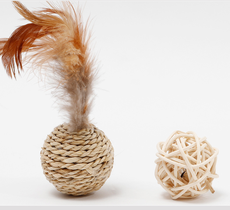재고 도매 국경 Hawo 고양이 식물 밀짚 벨 더블 볼 등나무 공 재미있는 고양이 자기-안녕 장난감 공 고양이 장난감