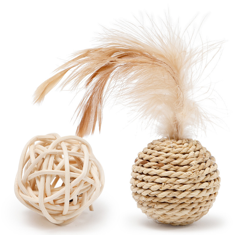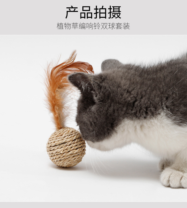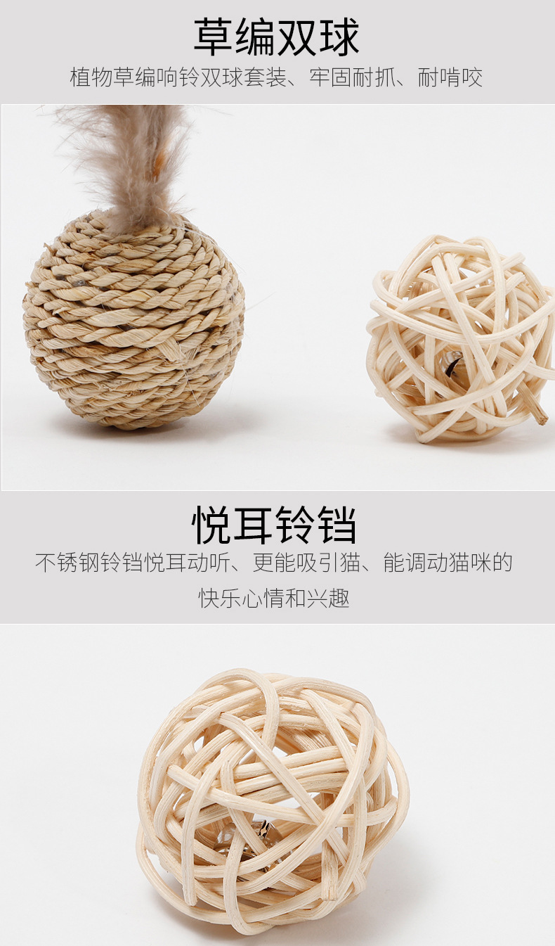 재고 도매 국경 Hawo 고양이 식물 밀짚 벨 더블 볼 등나무 공 재미있는 고양이 자기-안녕 장난감 공 고양이 장난감스토어 가기