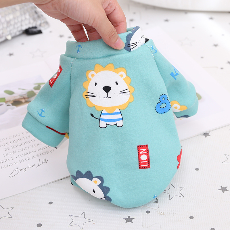 재고 개 옷 가을과 겨울 새 애완 동물 옷 양털 인쇄 스웨터 테디 두 다리 옷 고양이 옷