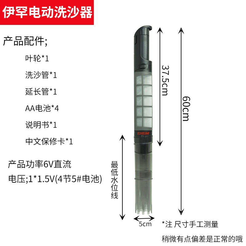 说明:淡海水通用;可以全部水下操作;4节5号电池驱动;沙粒直径不小于2毫米。