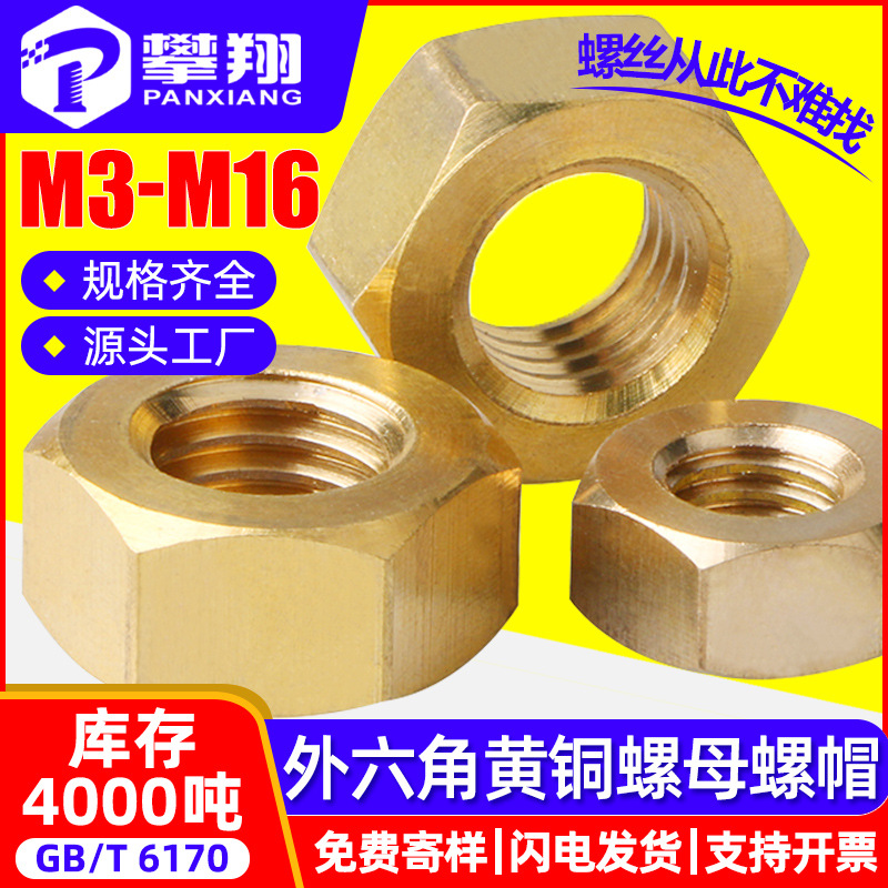H59 외부 육각 구리 너트 도매 4 점 황동 너트 두꺼운 순수 구리 나사 너트 M3/M6/M8/M12