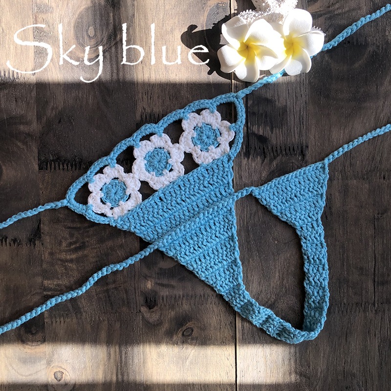 아마존 이베이 유럽 및 미국 in Net 레드 핫 셀링 수제 단색 짠 3 꽃 장식 섹시 수영 바지 반바지스토어 가기