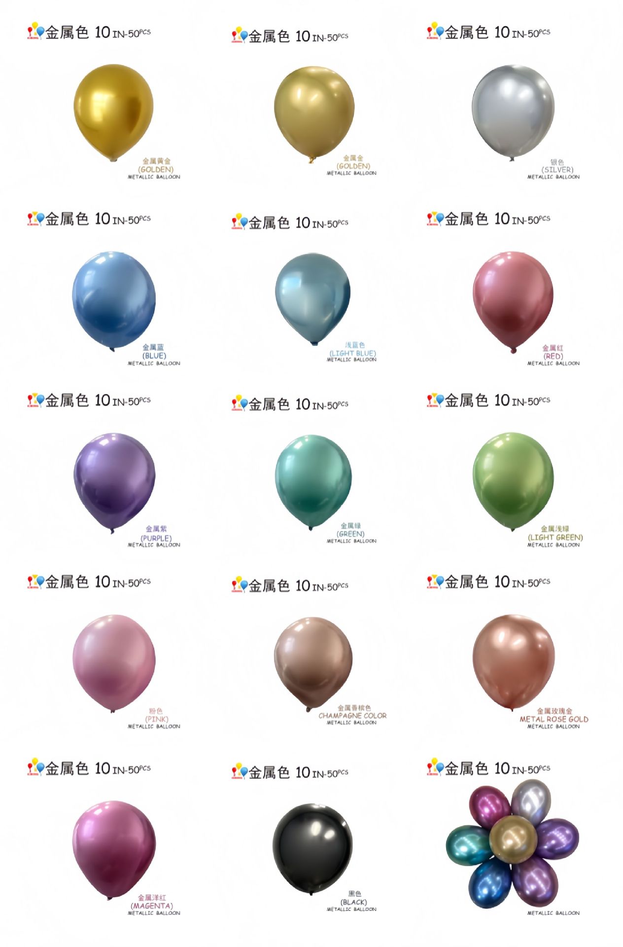 허베이 10 인치 1.8g 라텍스 금속 풍선 12 인치 50 생일 파티 장면 레이아웃 내보내기 풍선스토어 가기