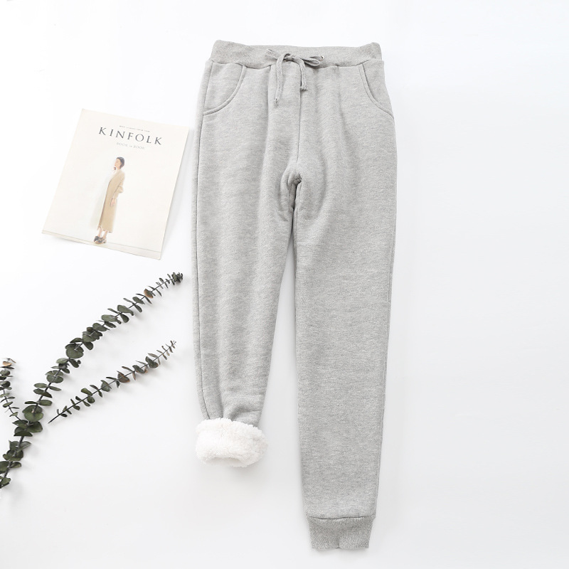 양고기 양털 캐주얼 바지 여자의 가을과 겨울 기모 두꺼운 따뜻한 면 바지 슬리밍 스포츠 스트레이트 다리 바지 웨이 바지