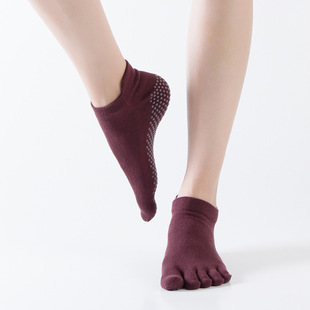 瑜伽袜全棉分趾防滑普拉提袜子 亚马逊跨境短筒五指瑜伽袜子