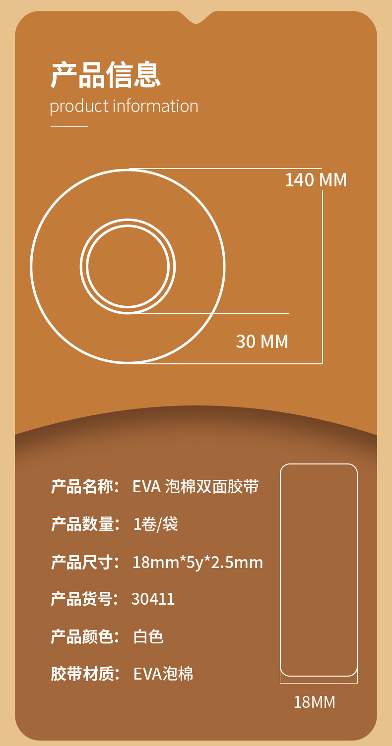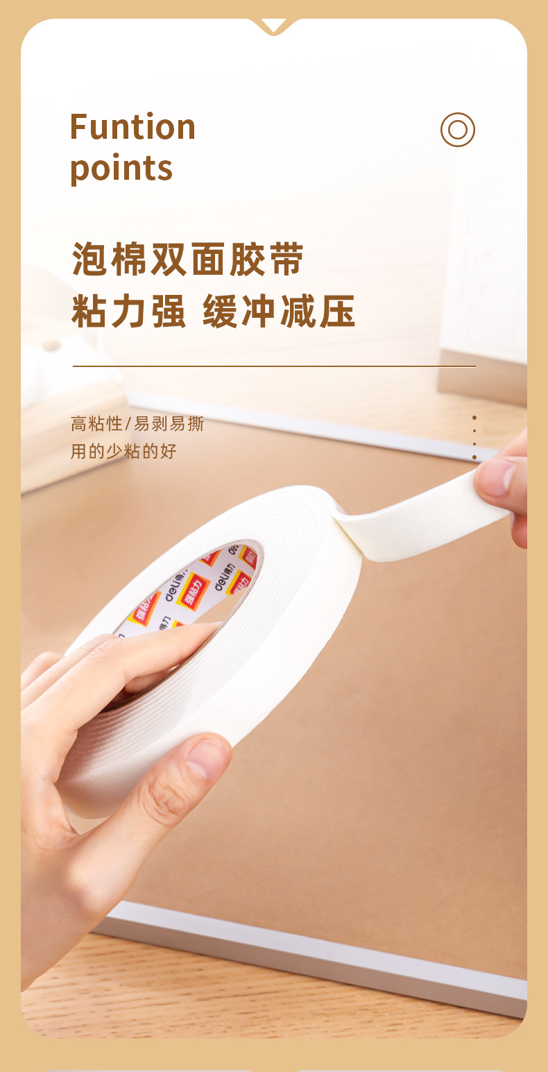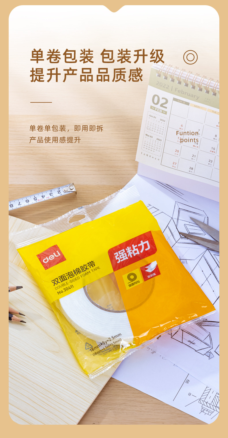 델리 30411 스폰지 폼 양면 접착제 18mm * 5y 사무용 테이프 고점도 폼 접착제