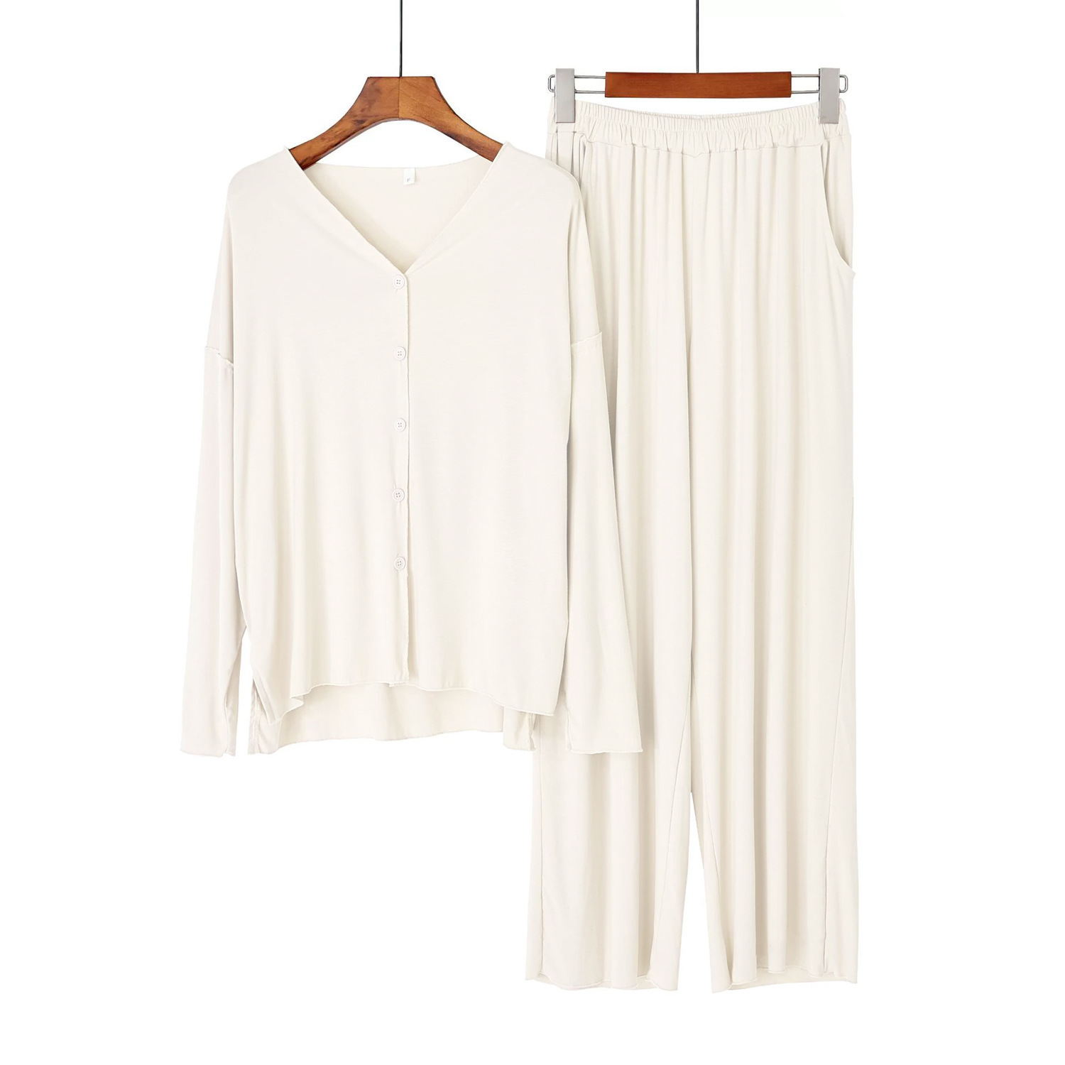 외국 무역 봄과 가을 스레드 모달 얇은 여성의 잠옷 여성 에 바람 긴 소매 카디건 가정 옷 세트 도매