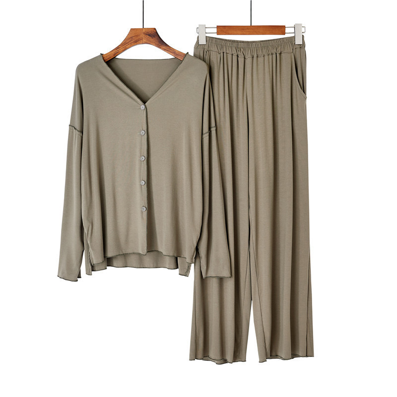 외국 무역 봄과 가을 스레드 모달 얇은 여성의 잠옷 여성 에 바람 긴 소매 카디건 가정 옷 세트 도매스토어 가기