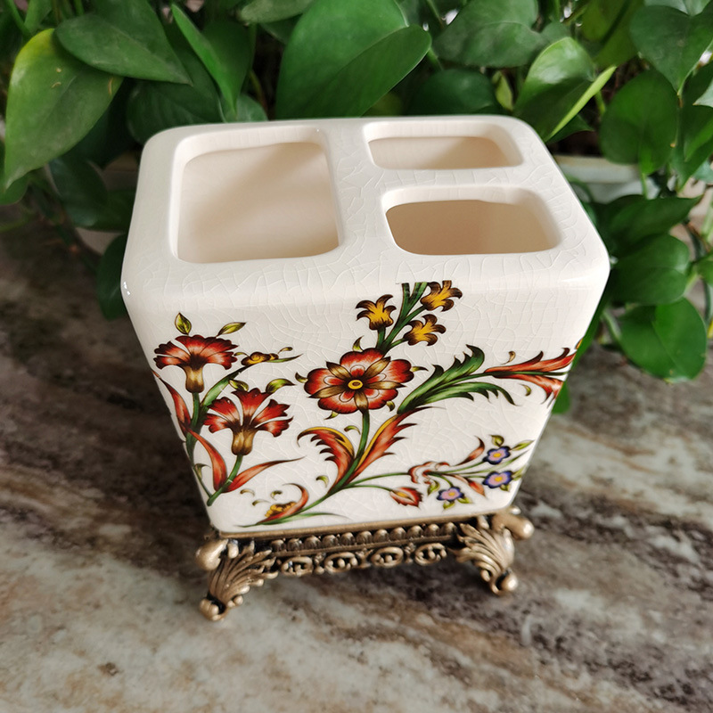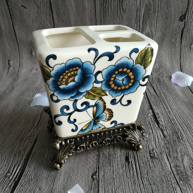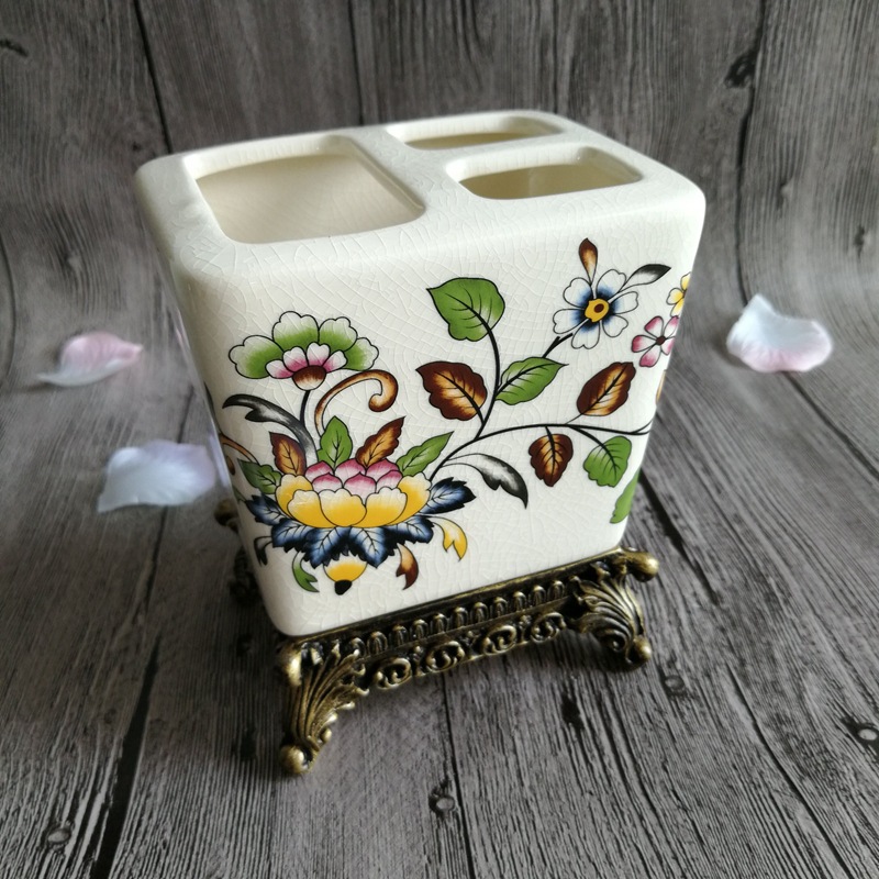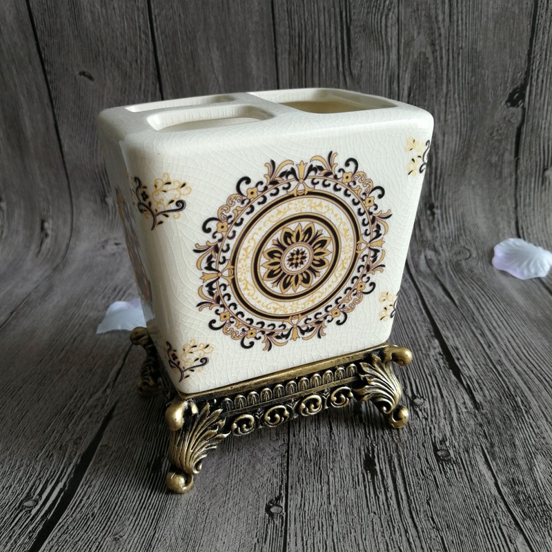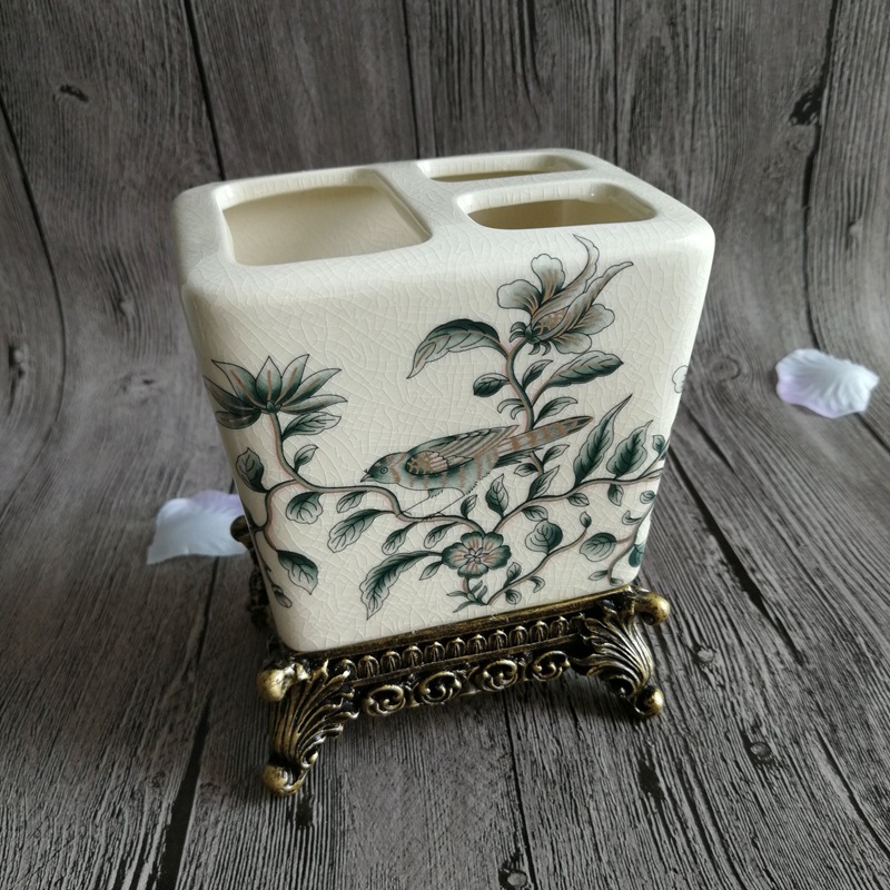 유럽풍 레트로 세라믹 욕실 칫솔꽂이, 미국식 호텔/펜션용 창의적인 칫솔/치약 보관함 장식품