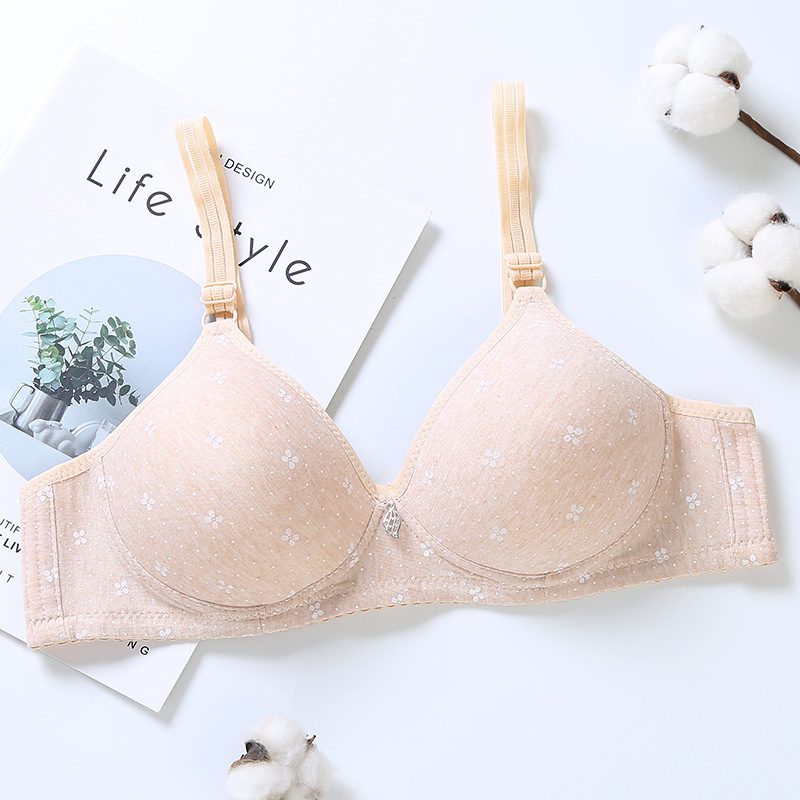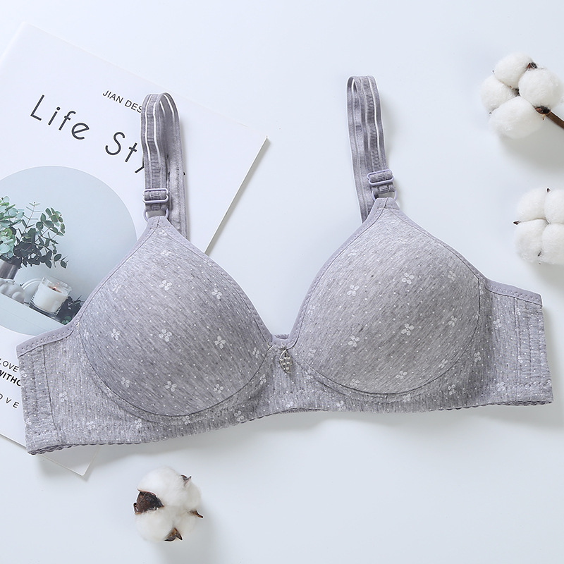 중년 및 노인 인쇄 브라 여성용 코튼 얇은면 비 스틸 링 속옷 편안한 어머니의 비 스틸 링 브라 브라