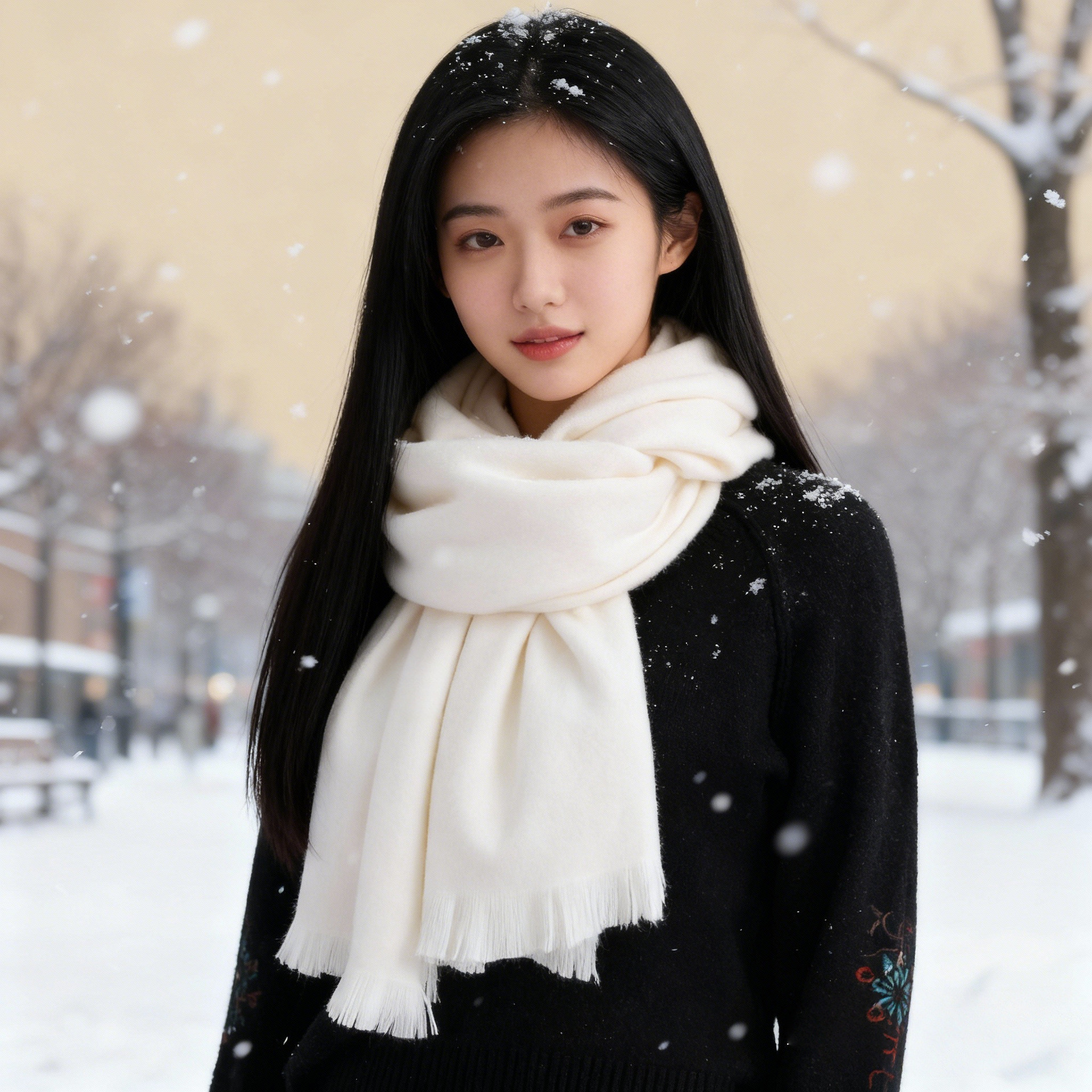 한국 단색 두꺼운 흰색 짧은 수염 스카프 여성용 단색 캐시미어 스카프 연례 동창회 고급 짧은 수염 스카프스토어 가기